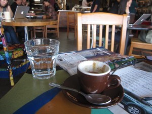 Even though this North Beach cafe roasts its own beans, the espresso is as watery as I had recently at SFO. Very kind baristas and the back room’s leather banquettes makes you feel like a Beat Generation author. The bum sleeping on a table there made me feel like this is San Francisco.
