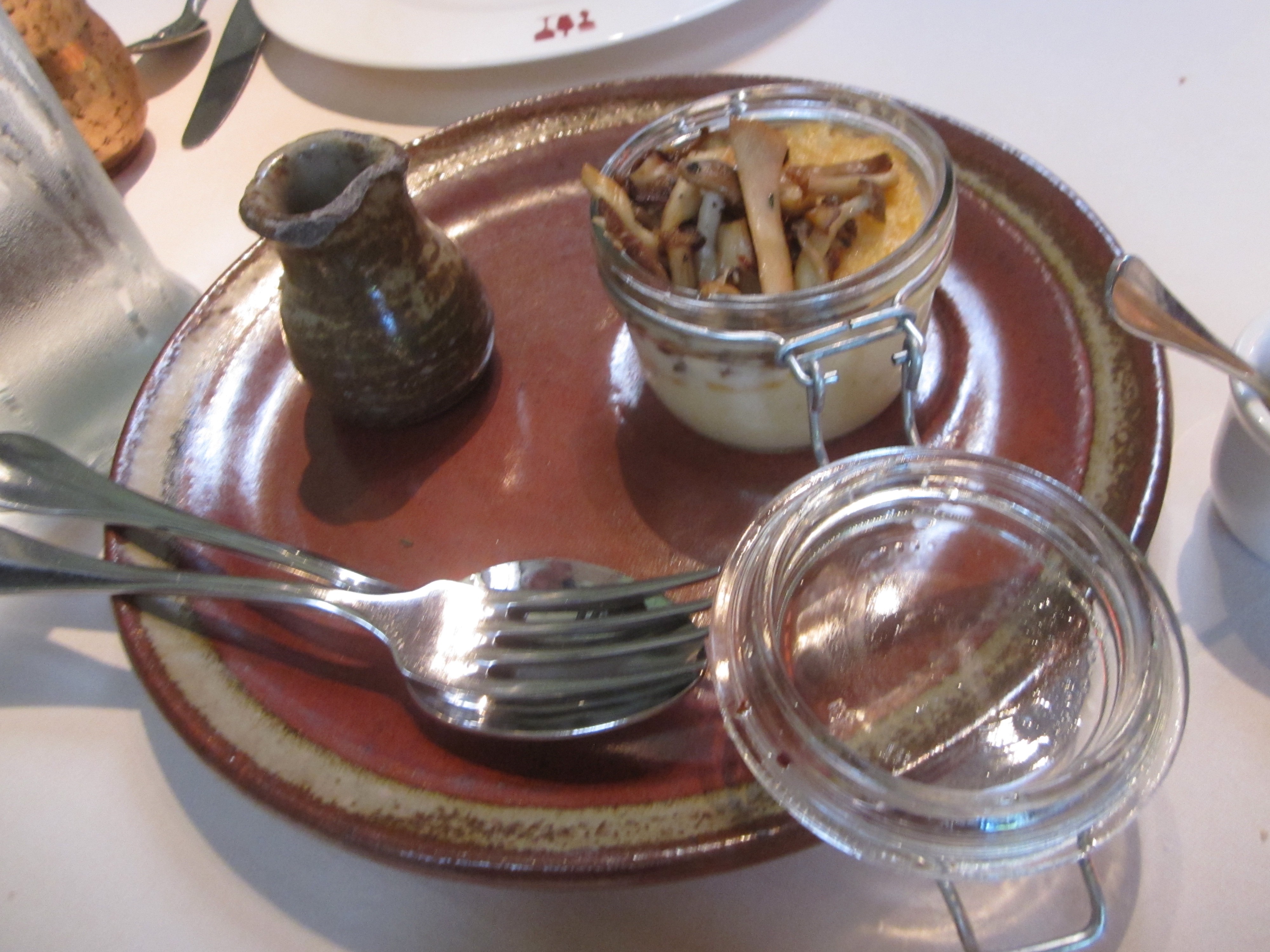 La dolce vita is all I could think about sipping the Chiarello Family’s exquisite Chiara Bianco Ribolla Gialla, contemplating the revelation that is Bottega’s polenta under glass. Served in a canning jar with the lid open (so the polenta really is more “inside” glass), the polenta arrives heated to a lusciously soft consistency that no polenta has ever seen, and is so robust in flavor than any other polenta you’ve likely encountered. We’re talking about polenta here, the side dish everyone dreads to see with that tempting fish or steak you were originally planning to order. Usually polenta, or corn meal, or also considered baby food, is a waste of plate space. It’s a plate and stomach filler. Not here whatsoever.
