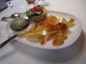 Duck is served three ways, as is so in vogue nowadays. The breast gets roasted, joining a confit leg, and duck liver mousse, alongside spiced hazelnuts, watercress, poached rhubarb, and Sierra Beauty apples. Perhaps you’ll instead choose a pork chop with cavalo nero and cinnamon stewed plums or the lone seafood dish of a bouillabaisse-like Mediterranean seafood brodo with paprika saffron rouille. The lunch special burger was an impressive minimalist rendition. The patty gets a helping of short rib meat added, then is slathered with on the verge of too much truffle mayonnaise. It’s an addicting burger (as are the shockingly smooth and potato flavored homemade potato chips with the burger) and one of the easiest to hold too: no clean-up necessary. Truffle oil enemies stay away, though. They should also stay away from the two foot high pile of truffle fries on every other table.