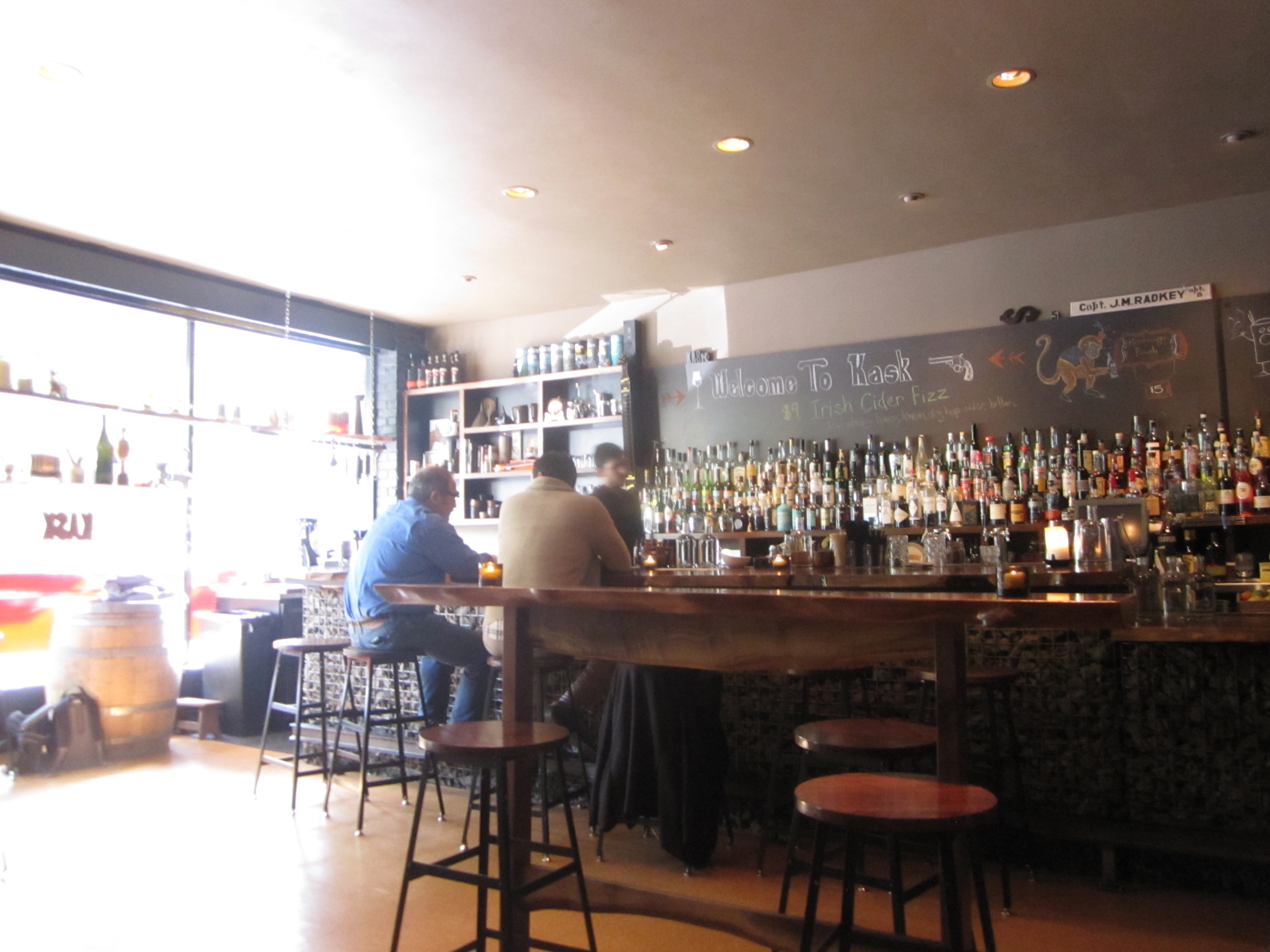 The postage stamp sized Kask in the West End of Downtown is owned by Grüner, the exceptional Alpine European restaurant next door that serves arguably America’s premier burger alongside spruced up choucroute and spaetzle. Kask has nothing to do with Grüner’s cuisine. The Rabo de Galo leans towards Rio instead of Vienna, with a samba and coffee effect on the Manhattan, blending Brazilian coffee bitters with sweet vermouth, gran classico bitters, and Novo Fogo barrel aged cachaça. The Bootstrap Buck is no basic dark and stormy, with a sensual depth to the Cruzan Blackstrap rum, ginger beer, demerara sugar, and hefty dose of nutmeg.