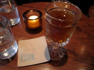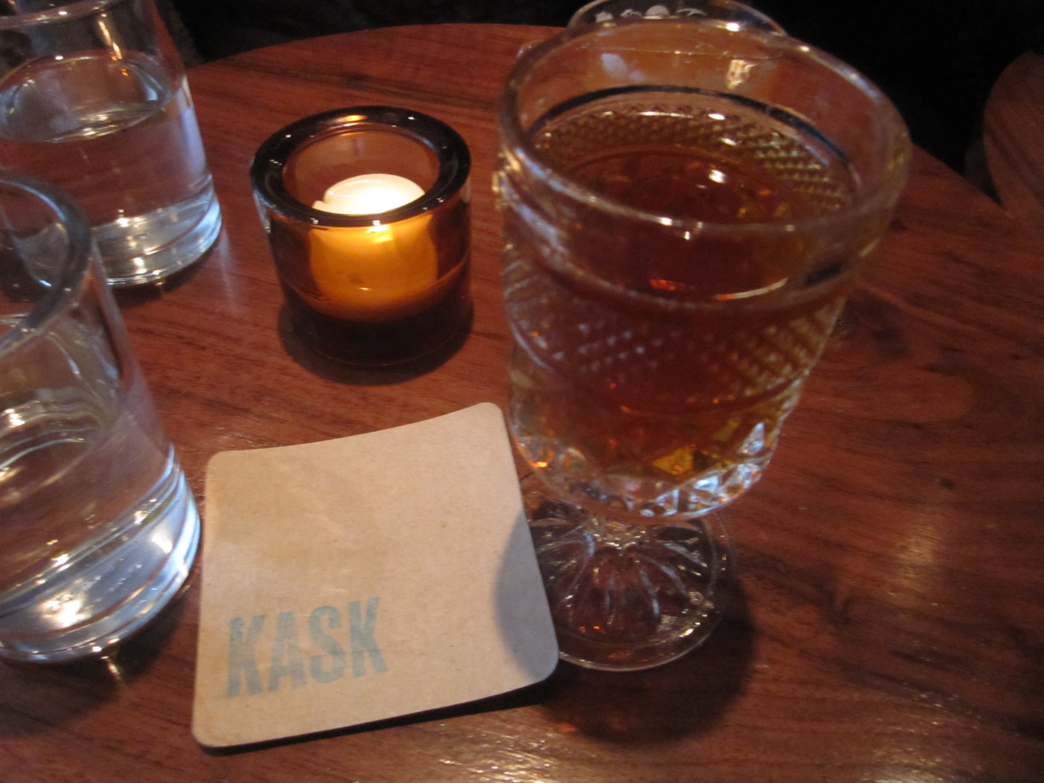 Kask feels a bit like an Alice in Wonderland bar with its low tables and stools in the corner, then the handsome bar and high two top tables across the room. Space is very limited so some right at 5 pm to have some peace in this wonderland of exquisite cocktails. No Grüner food is available except for some of their charcuterie and charcuterie from Olympic Provisions also is on offer.