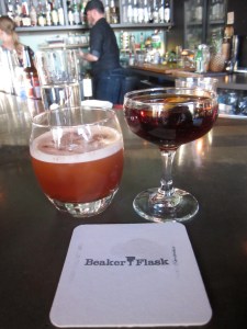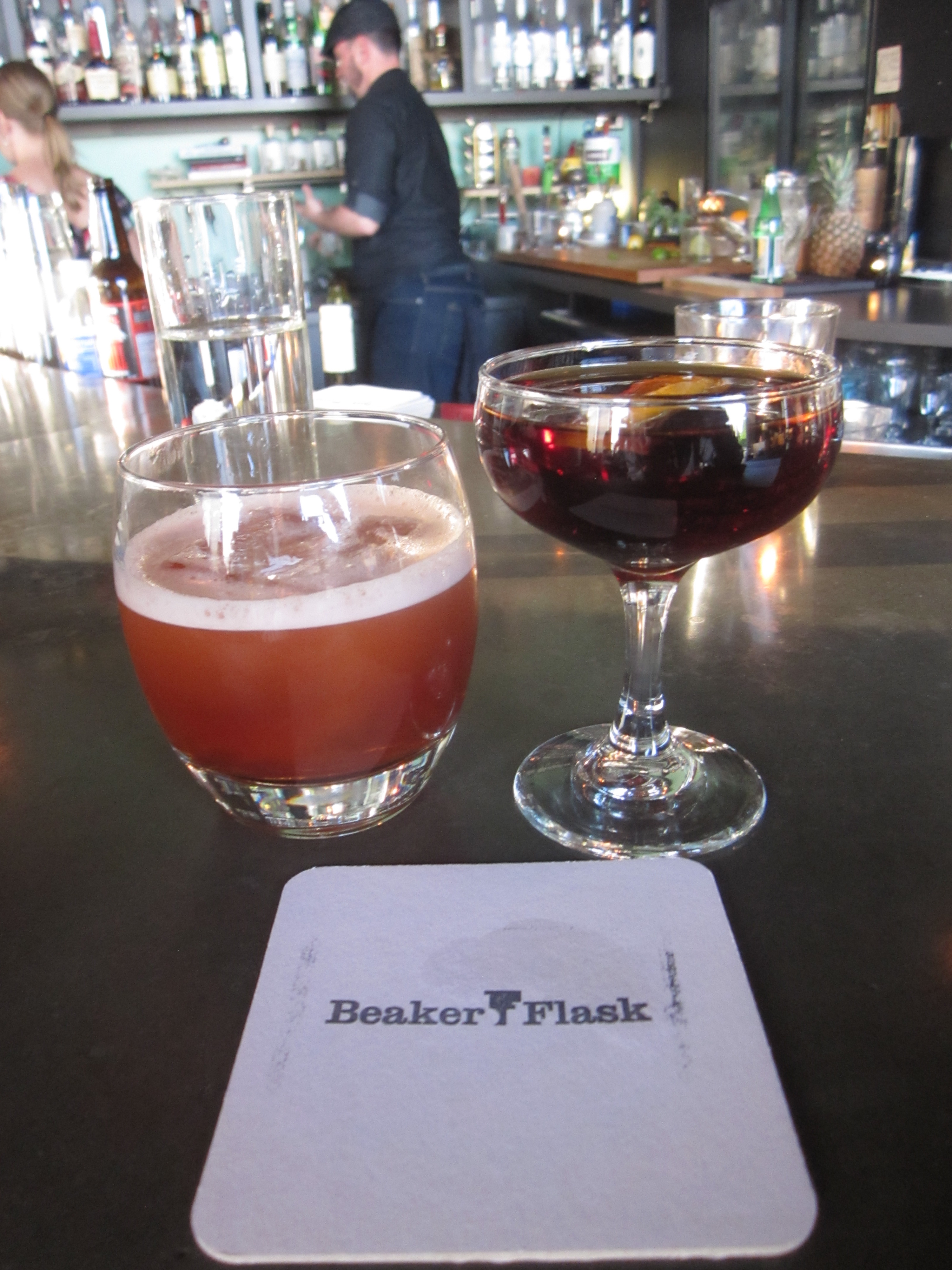 Like Clyde Common, Beaker and Flask, in the Southeast, has an open kitchen crafting dishes from an exciting menu, but the real pièce de resistance lies at the room long curved bar. With your black tea fried chicken, the stiff but balanced Louisville Slugger would be perfect, with bourbon mingling with bitter cynar, ramazotti amaro, and benedictine. It’s a unique, more tart Manhattan.