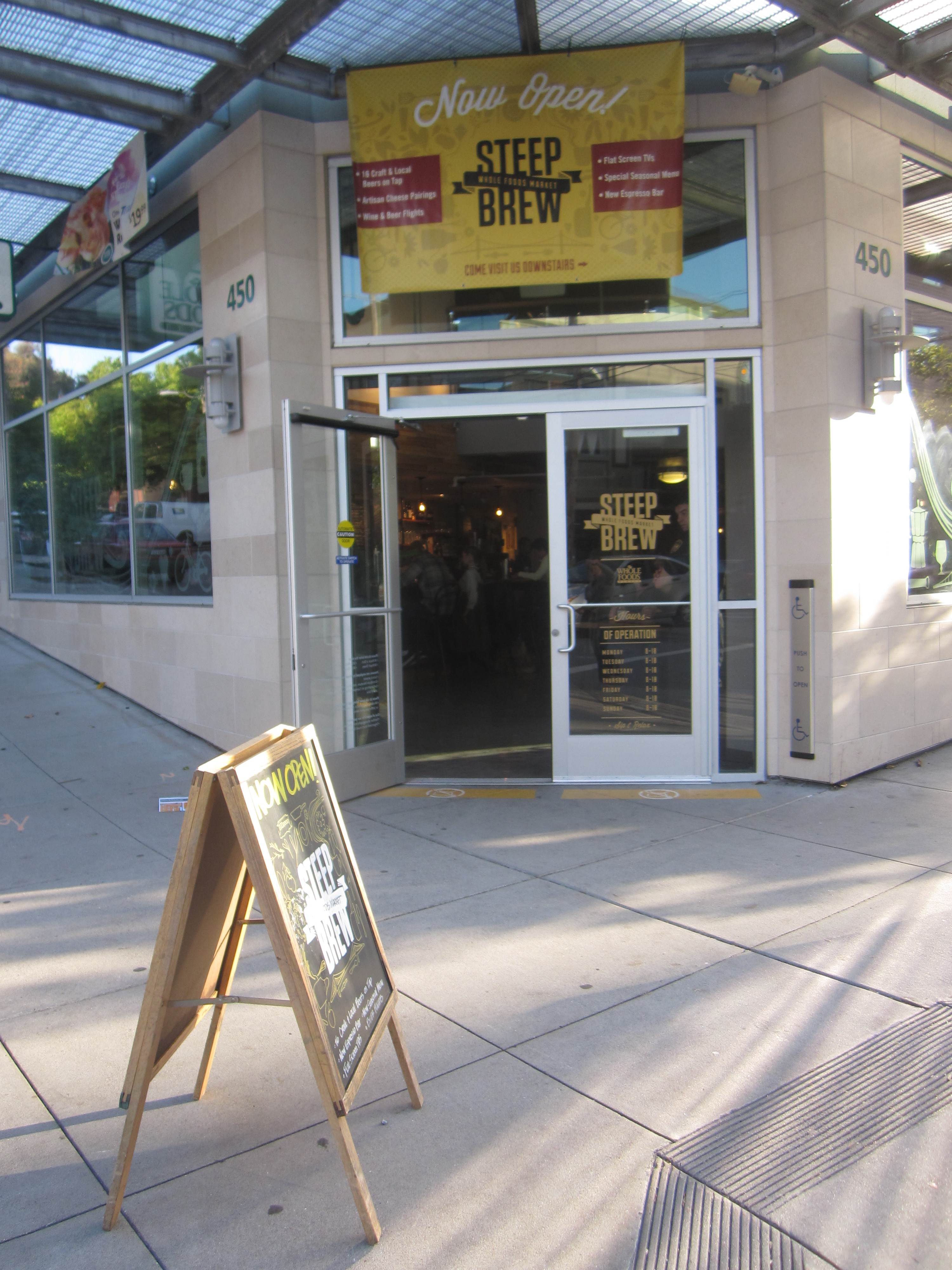 A bar inside Whole Foods Market? That’s what I thought after initially hearing about this new frontier Whole Foods is trying to conquer. It’s not just a bar. Steep Brew is a craft brew bar in the basement of the market on Potrero Hill, amidst a food court that is much more Alice Waters than Panda Express. Indeed, the atmosphere is not exactly idyllic for watching the game or catching up with friends. This isn’t going to be a neighborhood pub, as essential to a neighborhood as a city park. Steep Brew does however have an astoundingly impressive dozen or so craft brews on draft, from world leaders of the genre like Mikkeller, and hyper local nano breweries such as Linden Street in Oakland and Pacific Brewing Lab in San Francisco. Best of all, though prices for a pint are a bit steep (pardon the expression) around $7. For the same price, you can get a quarter of four ounce samplers. There’s no mark up like at most brew pubs (Monk’s Kettle…) for the sampler. It’s a steal.