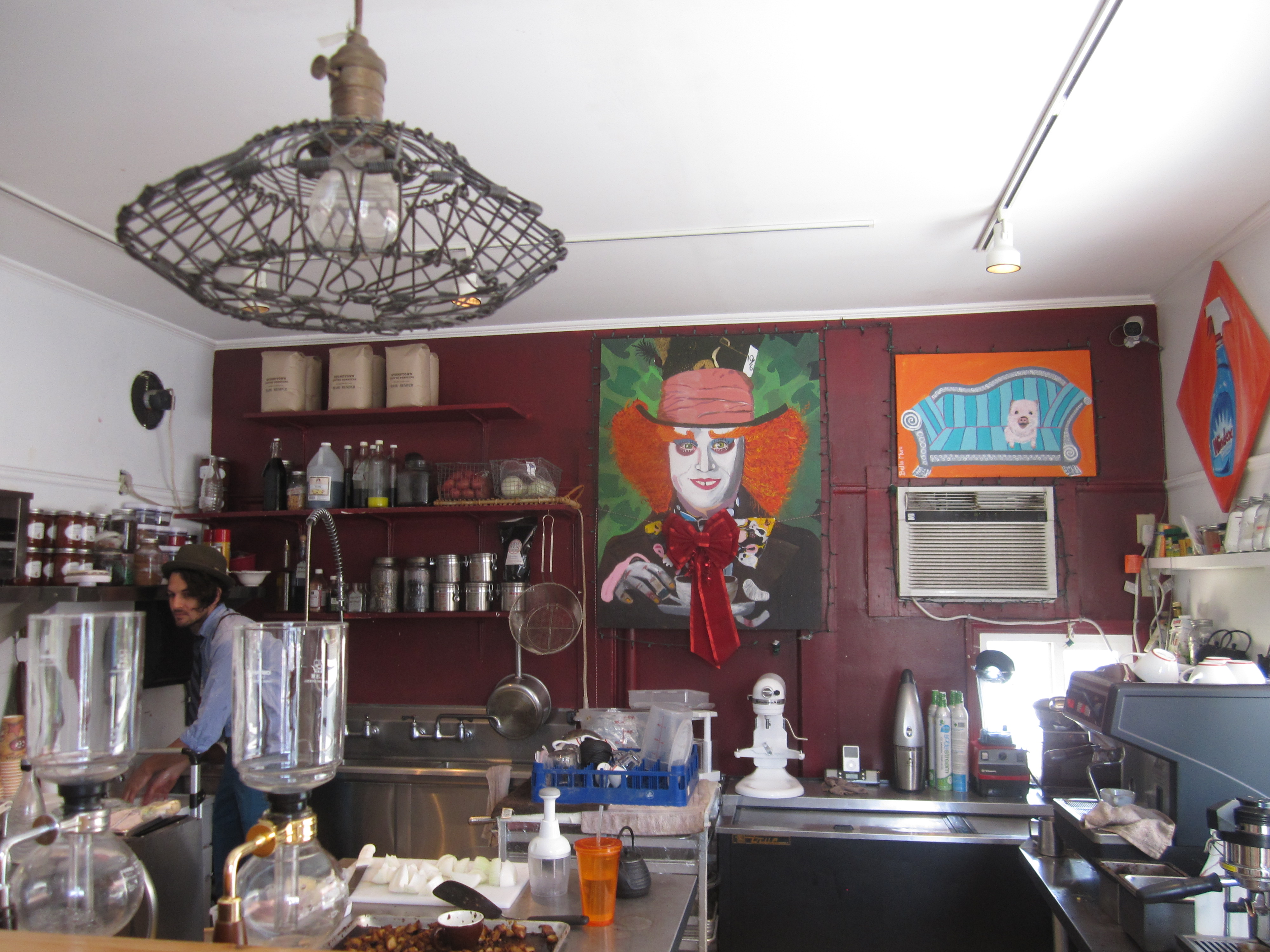 Dominated by a painting of Johnny Depp as the Mad Hatter staring at you as you order a spanish latté, Velvet is a little slice of the third wave coffee generation that has swept across the country much the same way local, organic, seasonal cooking and artisan mixologist cocktails have.