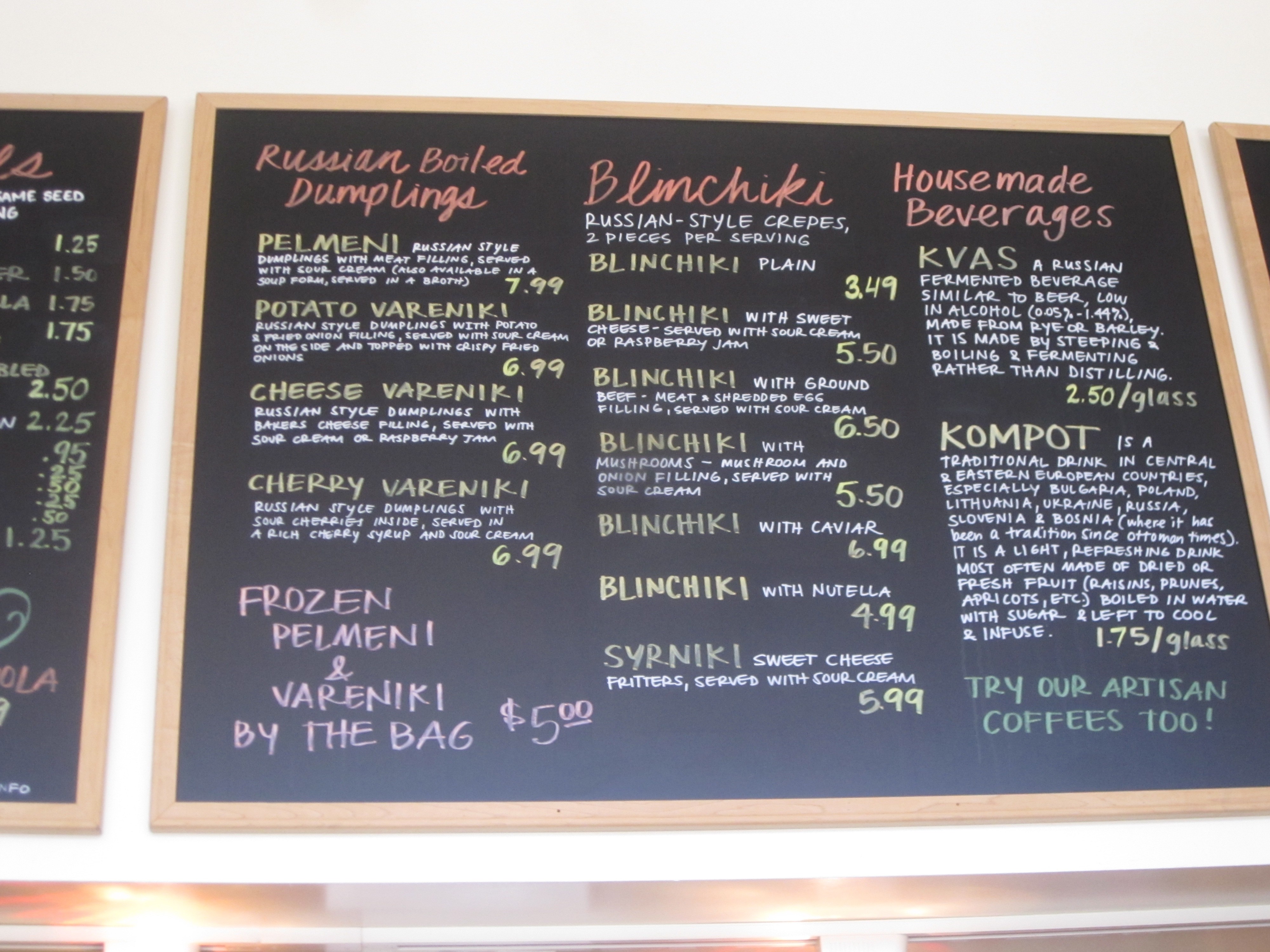 For dumplings, I prefer the pelmeni, which are similar to a less doughy and smaller tortellini. The meat filling is pristine with no filler or juice along the lines of Shanghai’s xiao long bao soup dumplings. These don’t explode upon impact. The skin is a little firmer than most dumplings. Pelmeni can also be served in a soup broth. Vareniki is more along the lines of blintzes– heavy, densely stuffed dumplings filled to the brim with potato and fried onions.