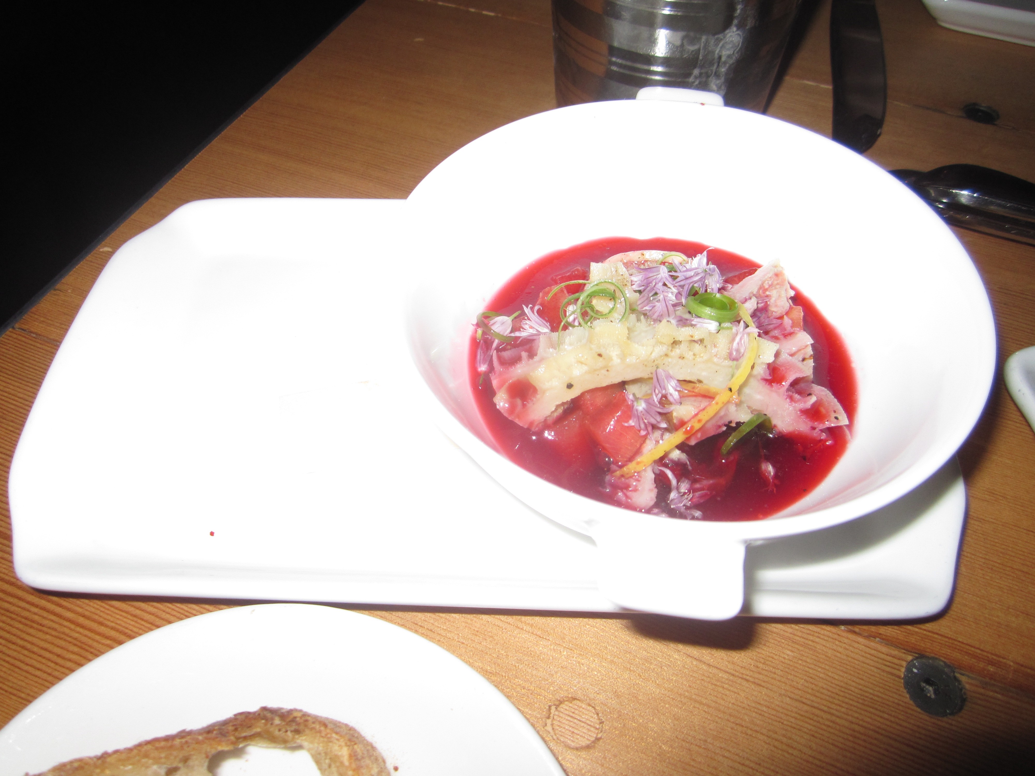 Here, it’s the seasons that act as the narrative for this theatrical piece. Unlike Next, there are no tickets to attend this play. AQ is a theme restaurant without feeling like there is any theme. Everything here feels natural. The decor speaks of the time and place. That time is summer. That place could perhaps be the Provençal countryside. The place certainly is not where AQ actually is located, just south of Market, along a still gritty stretch of Mission Street, not far from the future Twitter headquarters in one direction and the edgy Sixth Street corridor in the other. SoMa is a vast district of San Francisco, with some of the most glittering blocks in the city and some of the most struggling. AQ quite possibly is the most glittering restaurant presently in the city. Just a block away is still one of the city’s most challenging urban renewal projects. Whether Mayor Ed Lee can succeed in turning Market Street and Sixth Street into the successful gentrification projects that his predecessors did with other areas of South of Market (SoMa) remains to be seen. It certainly helps to have game changing restaurants like AQ with these projects.