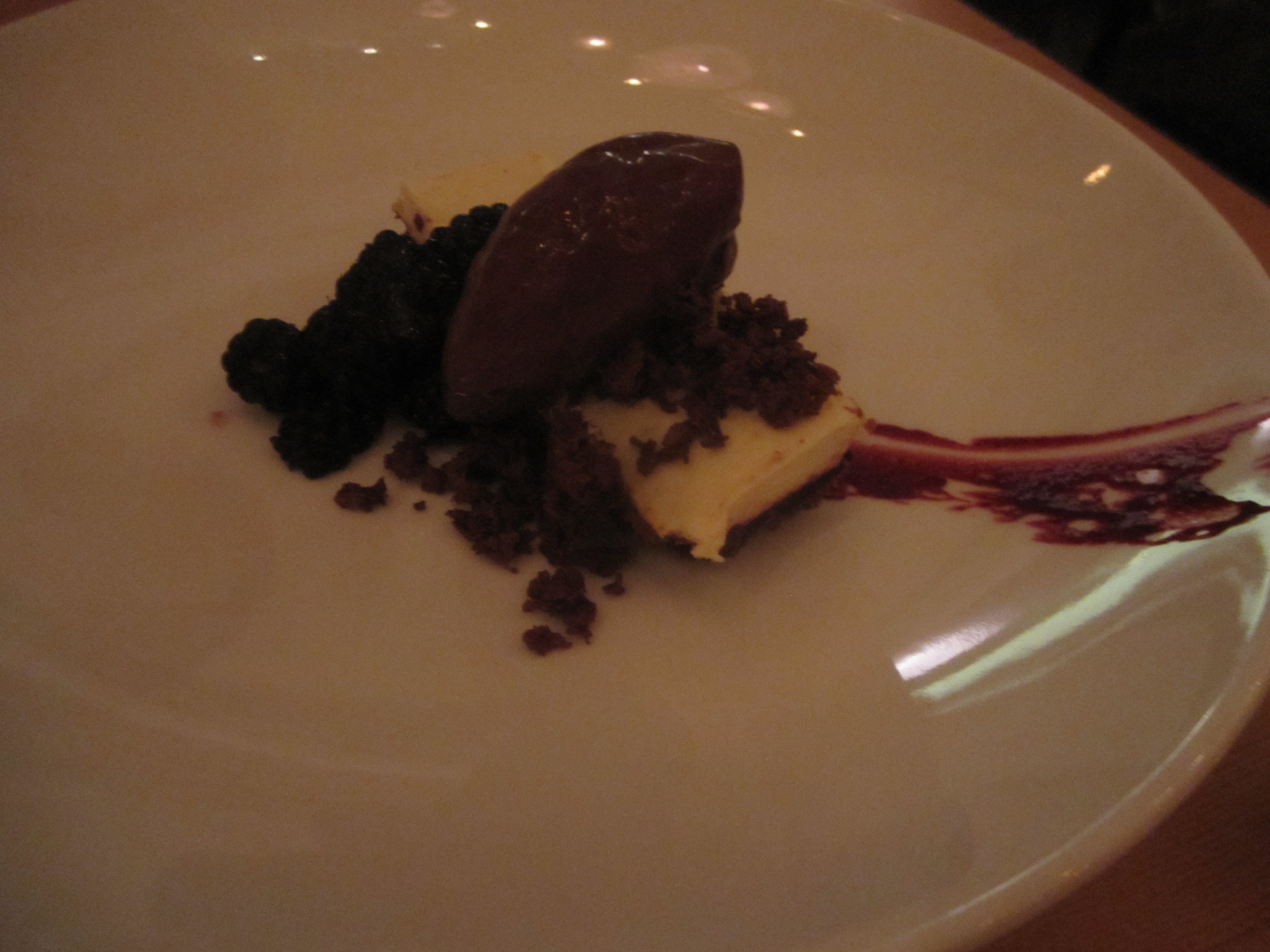 That barbeque pork provides the perfect example of AQ’s vision and Liberman’s deft balance of bold flavors with light touches, and a pinch of molecular modernism that avoids the usual foam, sous-vide rabbit hole. A juicy pork tenderloin serves as the centerpiece, accompanied by barbequed pulled pork spread about the dish. Cornbread comes interpreted as a pudding that brings polenta to mind, but tastes like the out of this world skillet fried cornbread in lard I once enjoyed at Kurtz’s in Bardstown, Kentucky. Shelling beans must have been long simmered in a pork broth because they taste vividly of ham, similar to those Willy Wonka candies that look like one thing and taste of something completely opposite. The tenderloin is topped by a mustard ash that looks and tastes exactly like whole grain mustard, and the dish is completed by a flourish of licorice tinged sauce. This is summer through the eyes of a visionary chef with true skill at executing the idea.