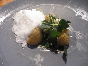 Puglisi is actually known more for his vegetarian compositions. However on this early July night, you would have had a tour de force meal on the meat side. The vegetarian options were fine, sometimes underwhelming. I wanted to love the combination of bitter green, unripe strawberries with an even more bitter pile of buttermilk “snow,” accompanied by a few sprigs of cress. Together, everything was refreshing and subdued. Nothing stood out and don’t dare eating the buttermilk snow on its own.