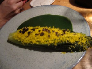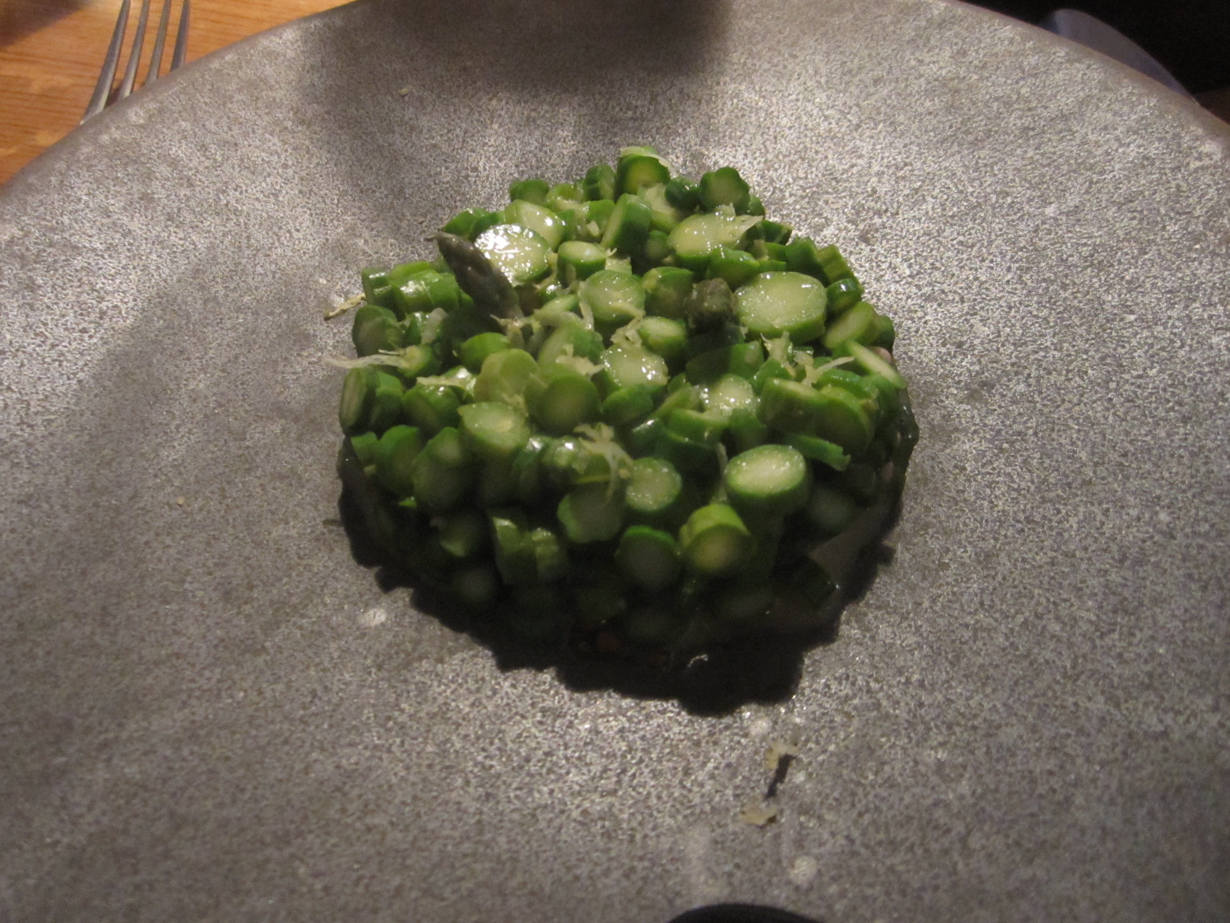 And boy does Puglisi have a way with asparagus. The only slight tweak would be to somehow add some color to the white on white on white plate appearance.