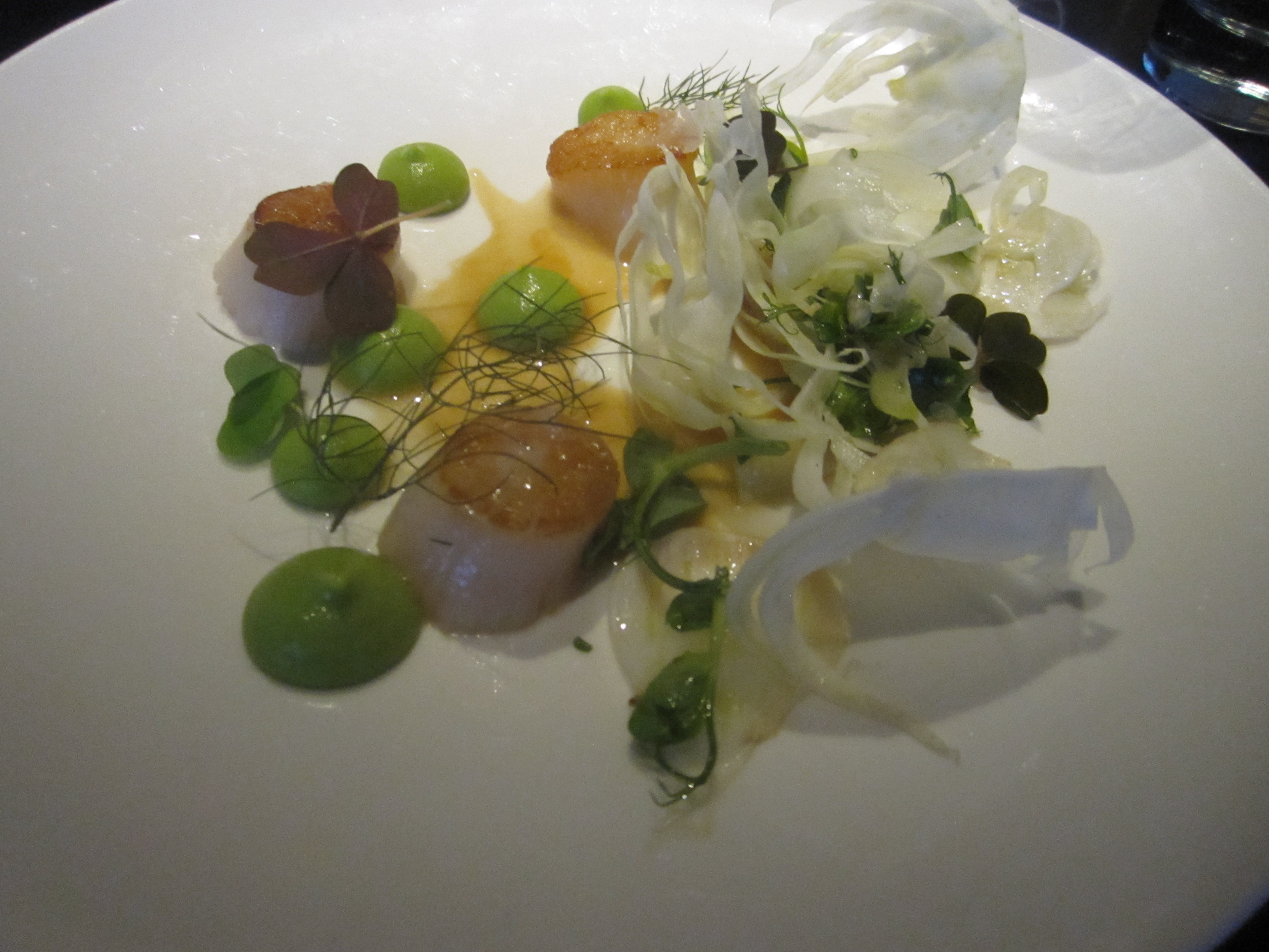 Perhaps my favorite experiences of Copenhagen outside Noma, were in the fantastic hands of Bo Bech at Geist and Adam Aamann. Bech’s concept at the spectacularly handsome, Riviera like Geist, should be replicated everywhere. Every dish is a small plate– larger than an appetizer and smaller than an entrée. Prices are reasonable for Scandinavia. Each dish has a modern flourish and a surprise. Turbot that melts on the fork comes with fennel ravioli, where gruyere cheese serves as the ravioli “dough.” Bech creates exquisite vegetable dishes: peeled, pickled tomatoes with stone crab and mint, or the grilled avocado topped with sliced green almonds that have the consistency and appearance of soft white chocolate. I’d go back just for the tender lamb hearts tossed with ginger, lime, soya, and sesame. Then again, the dish that still is in my dreams is the aromatic banana tart with maple for dessert. Bech used to own a bakery with only one bread on sale. That sourdough is now only served at Geist. Take advantage of this.
