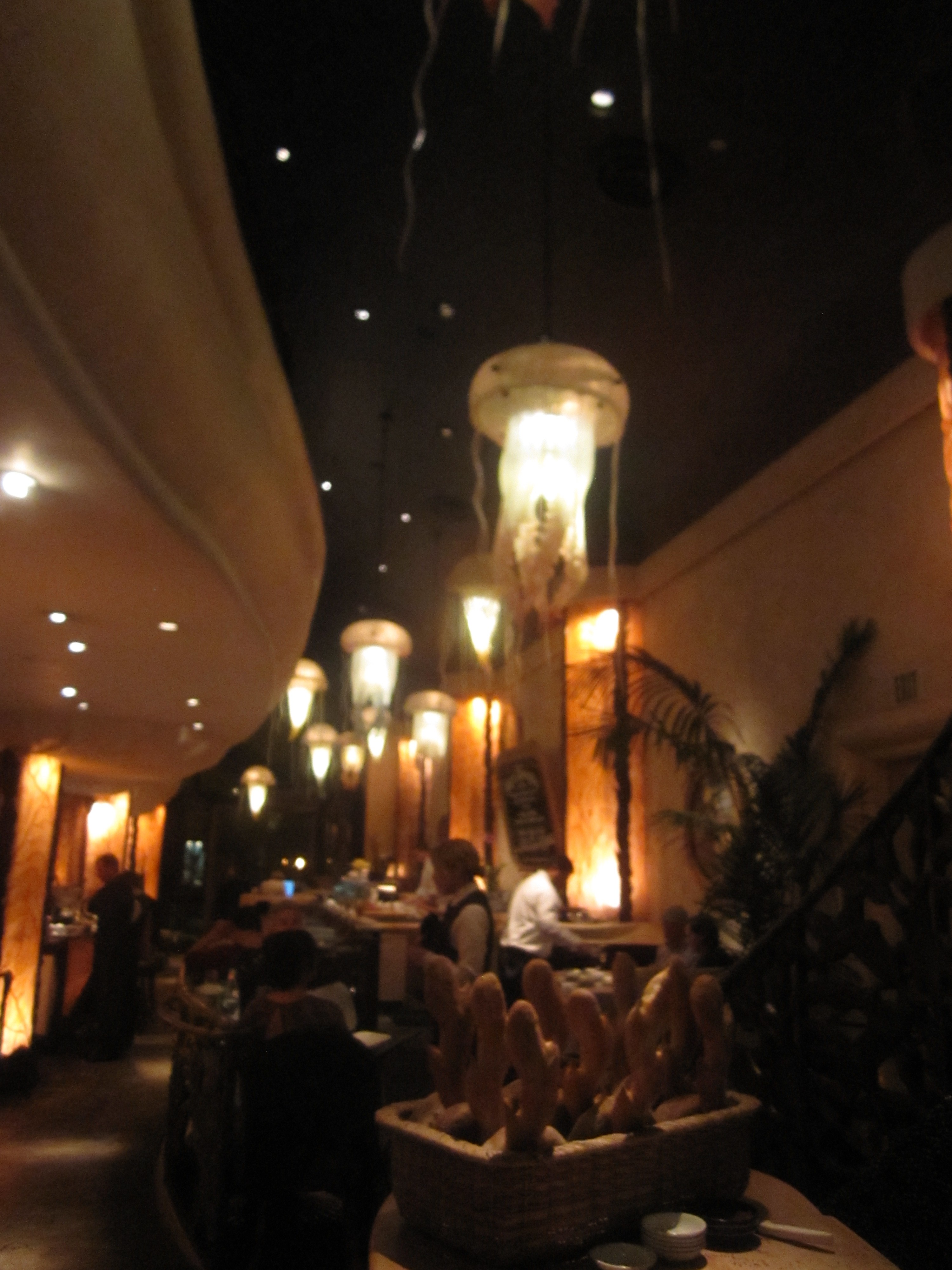 That’s all our table could say at the conclusion of a recent dinner, shrugging our shoulders and staring into the marine fantasy world that is San Francisco’s ever popular Farallon Restaurant. The powerhouse trio of architect Pat Kuleto, chef Mark Franz, and pastry chef Emily Luchetti opened Farallon in 1997, and despite more recently opening a duo of sleeker restaurants along the Embarcadero (Waterbar and Epic Roasthouse) and undulating waves of critical praise then pans then praise (how fitting for such an oceanic minded restaurant…), Farallon is still performing to a packed house night after night.