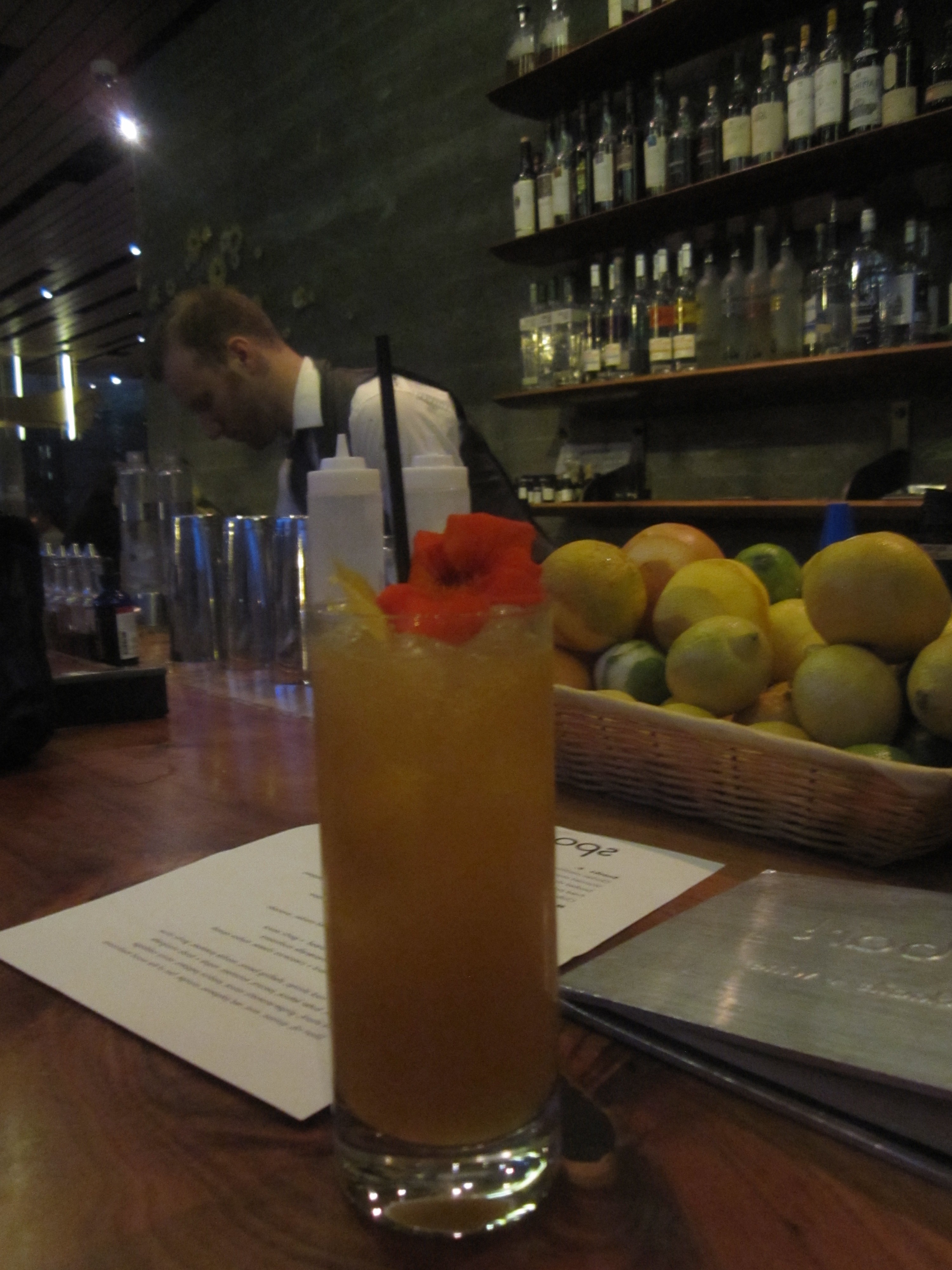 Across the street is craft cocktail central at the environmentally savvy Hotel H2’s Spoon Bar. Carbonated cocktails have received much acclaim here and I can’t say anything but superlatives for the “Carbonated Sidewinder’s Fang,” with two types of rum, orange, lime, passion fruit, and garnished with a flower. The entire bar is one impressive garden. The cuisine from former Aziza chef de cuisine Louis Maldonado draws raves as well.