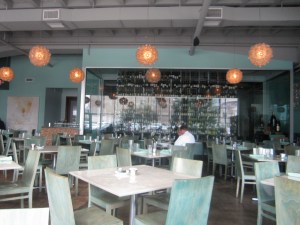 The design of the massive restaurant is strange and a little off putting with the somewhat rustic cuisine. From outside, the two tiered restaurant looks like a Frank Gehry designed Hollywood Hills home. You enter the sleek BLVD Lounge after walking by Mercedes after Range Rover at the valet. Then upstairs, there is a long communal table and bar at the entrance, followed by a somewhat crammed front dining room that shows hints of being upscale, but really is more of a bistro.