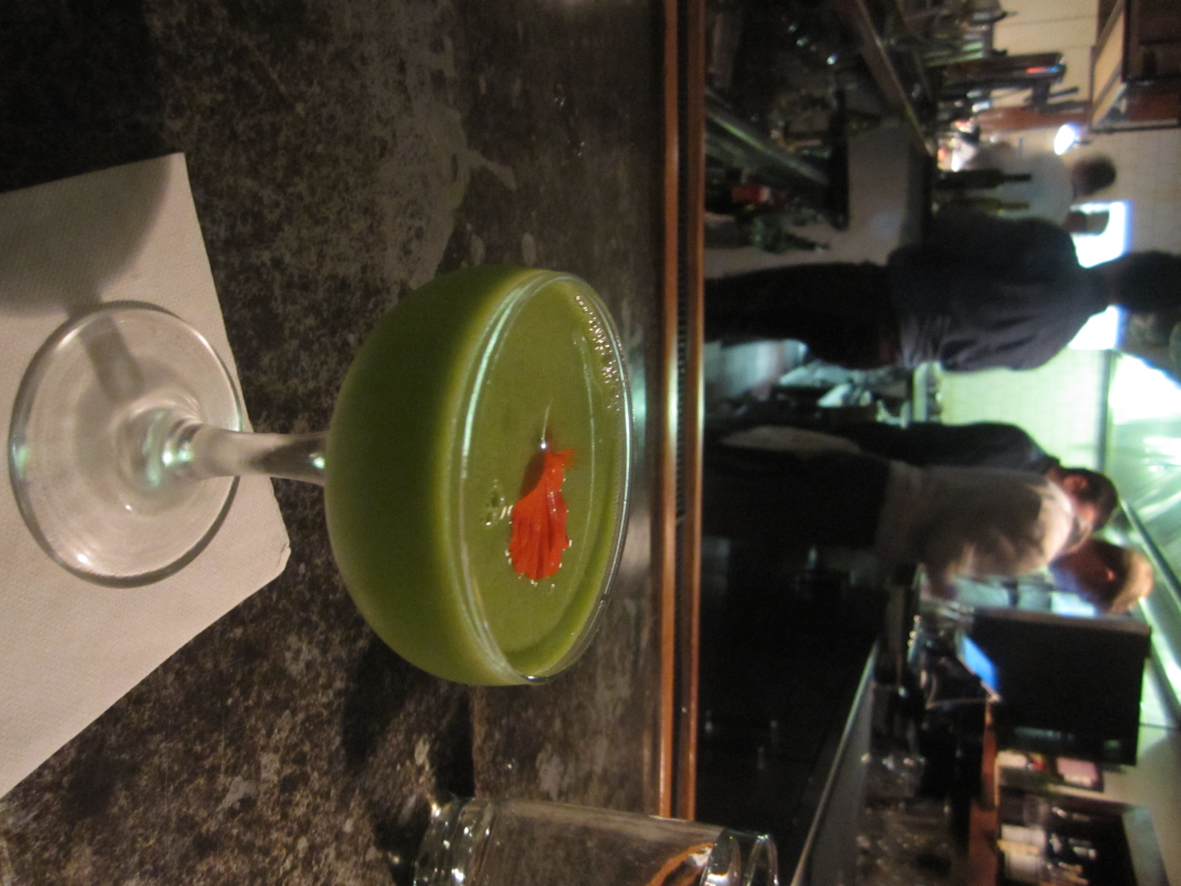 Served up in a chilled coup, the lush green hue from the nasturtium greens is what you first notice, as green as the Ring of Kerry or the meadows of the Presidio, where the greens likely were foraged by Naba.