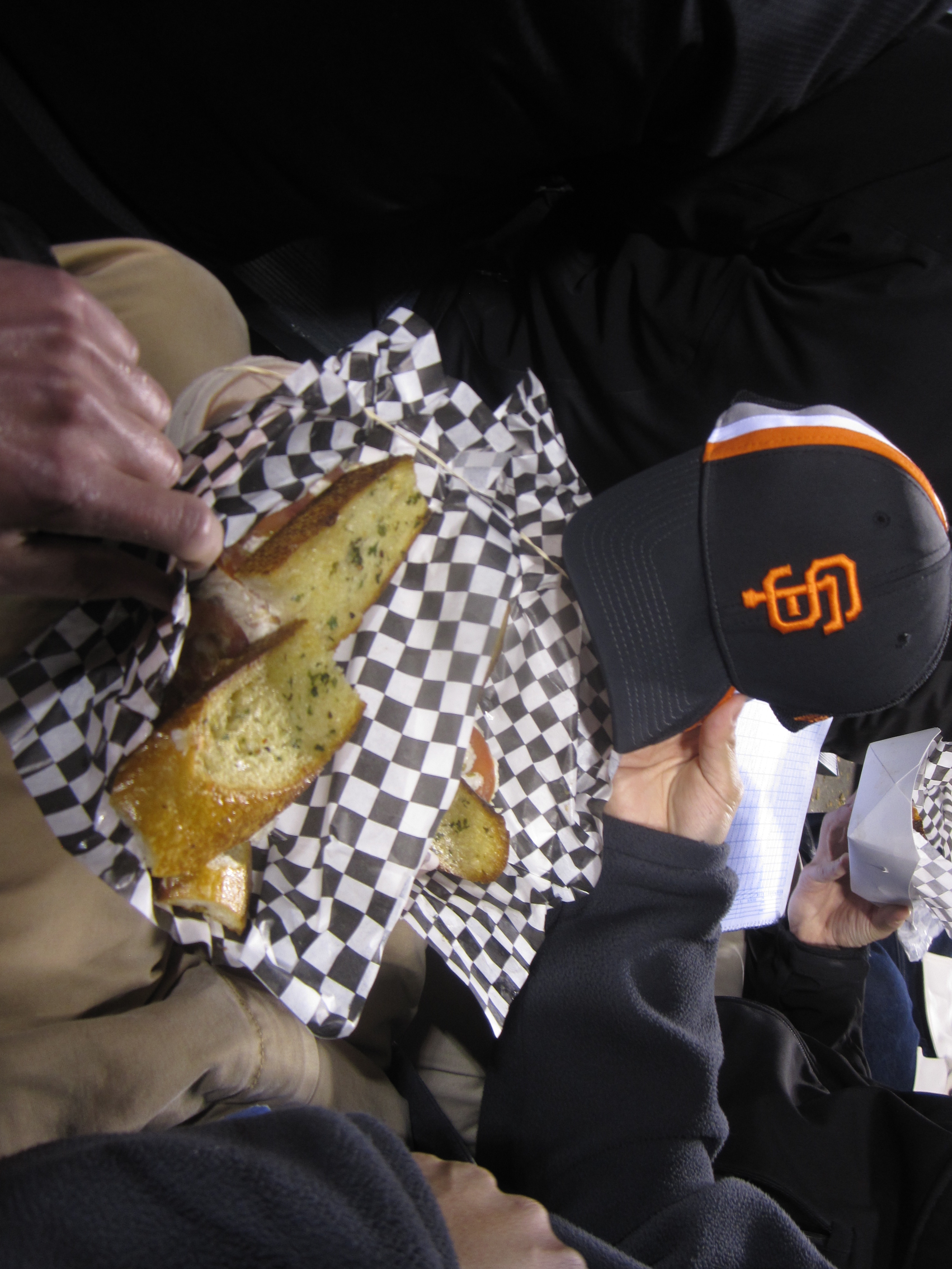 Now that we’ve eaten all over this neighborhood, it’s time for the game. And for that, get a Krazy Krab Sandwich and a Speakeasy Prohibition Ale out in centerfield. Enjoy!