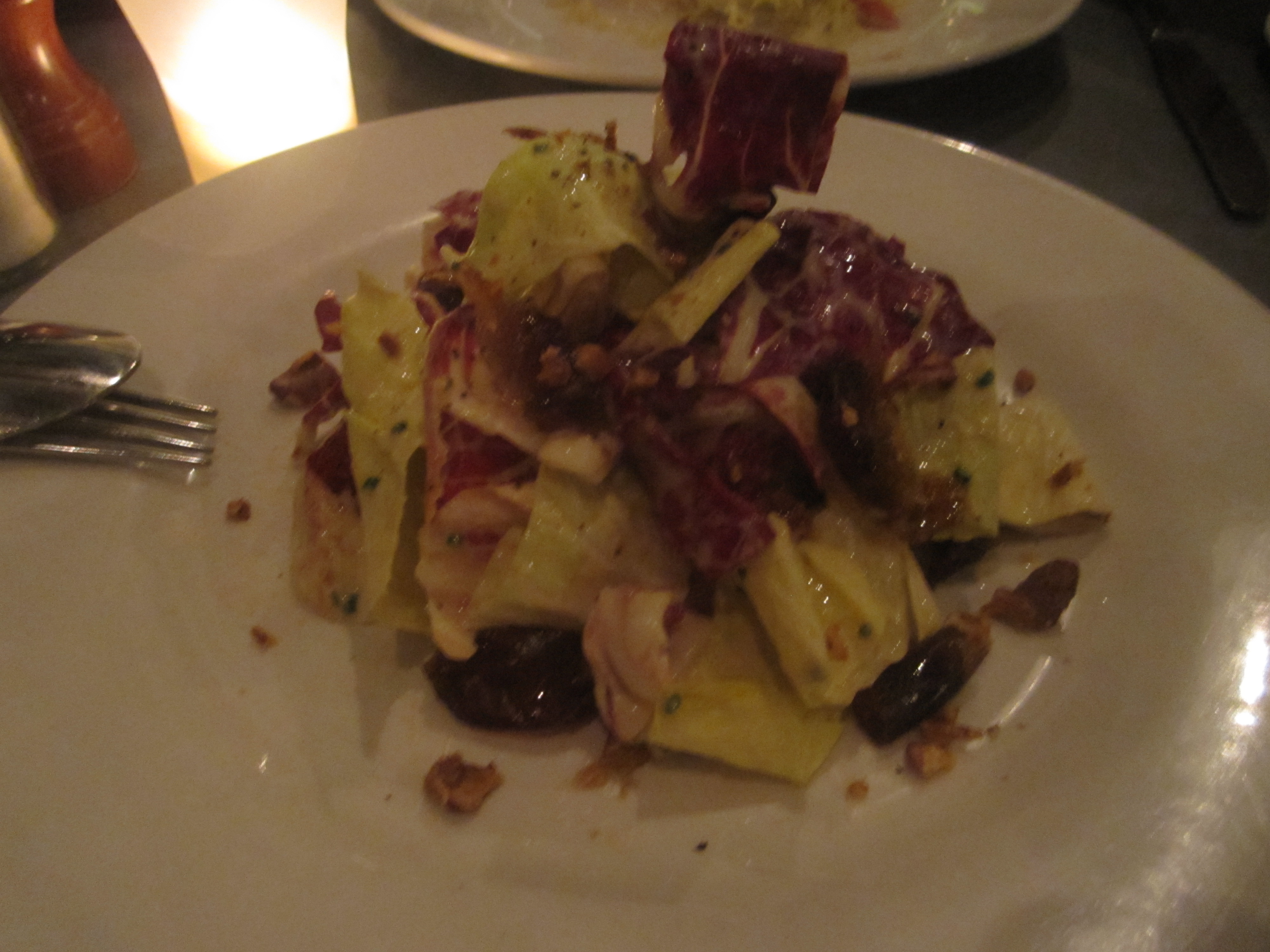 Dates are in season, shown in the “Double Date” and in an appetizer from Sillcocks with chicory lettuces, walnuts, and overly dressed in a nondescript, creamy sherry yogurt. The dish could be a winner with less of the yogurt and a yogurt that distinguished itself more.