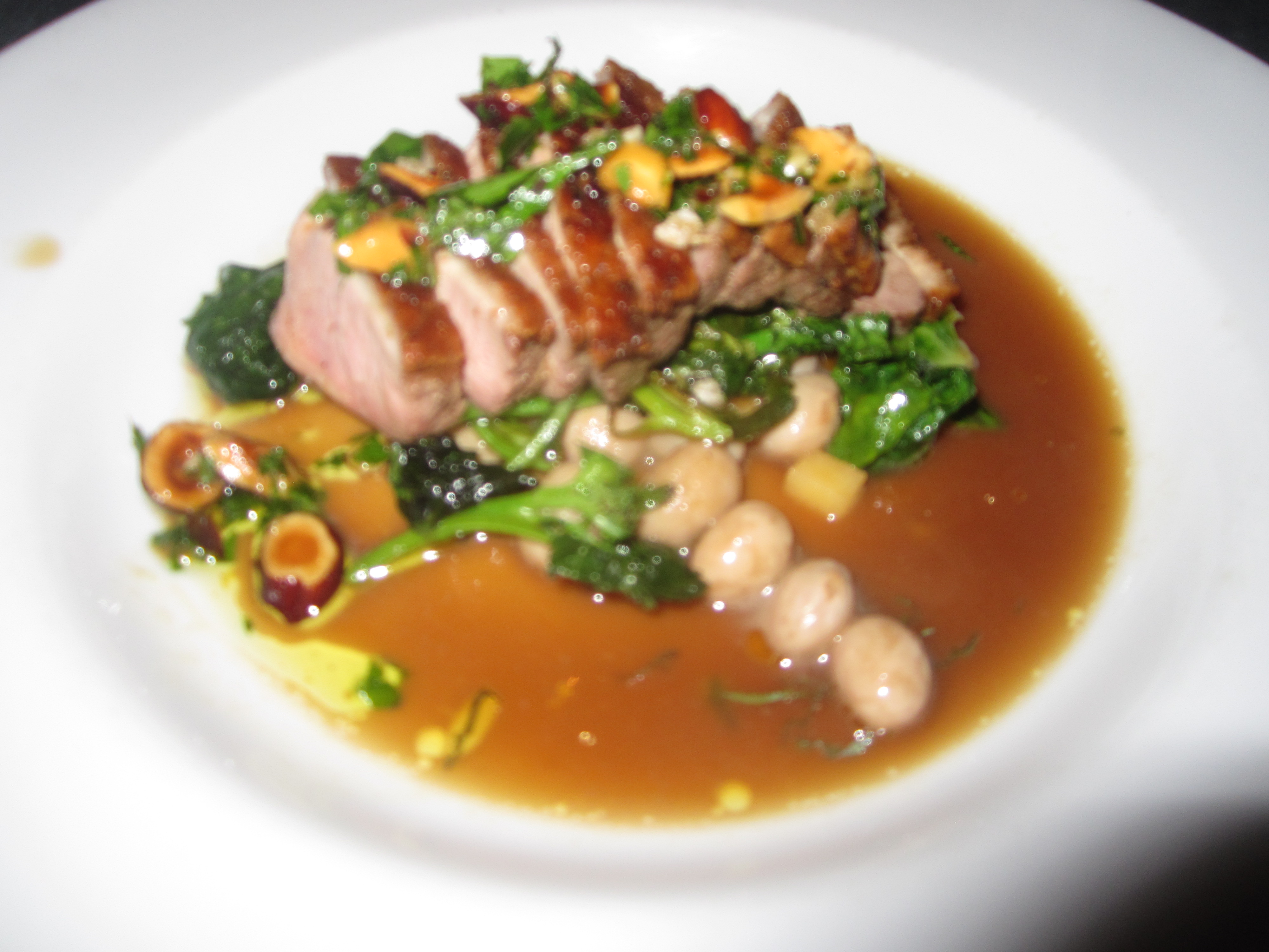 Range, San Francisco: Duck Breast with Shelling Beans, Roasted Apples, Broccoli di Cicco, and Hazelnut Gremolata