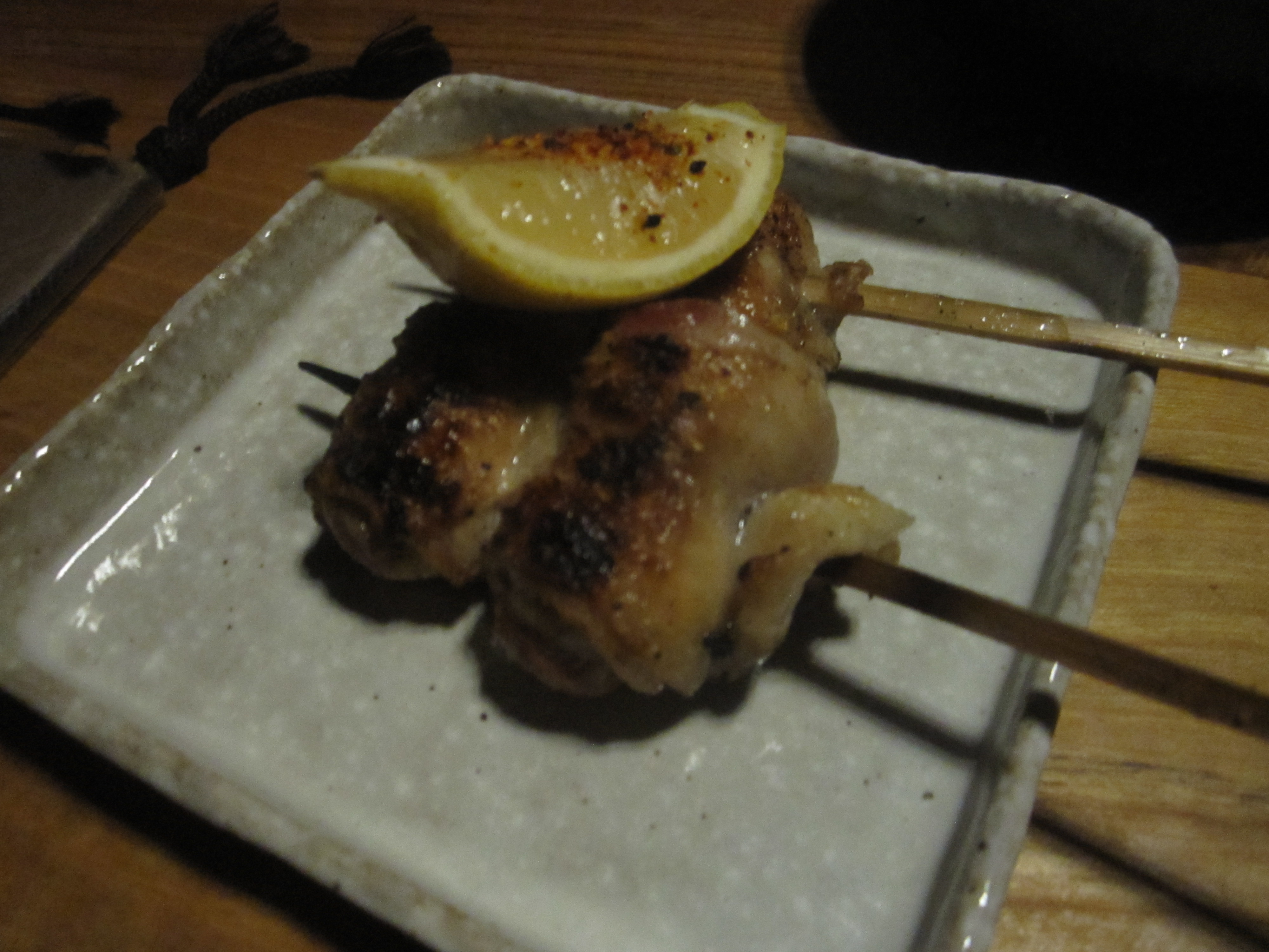 Ippuku, Berkeley: Grilled Chicken Thigh Oyster Skewers