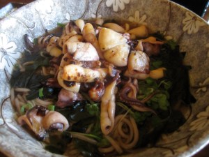 O Chamé, Berkeley: Warm Soba with Grilled Squid, Wakame Seaweed, and Daikon in Clear Fish Broth