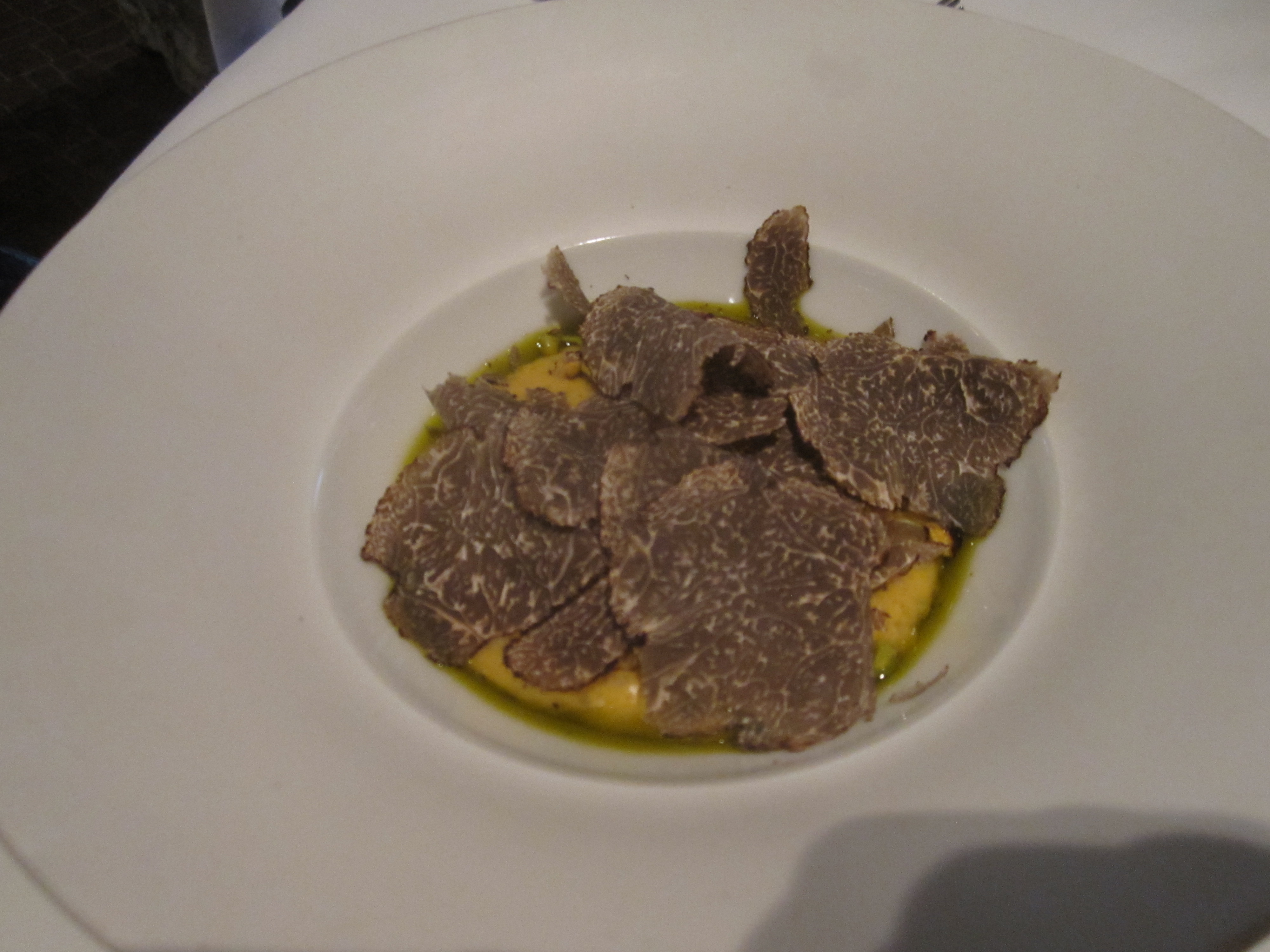 It’s success all around, with the spectacular butternut squash “porridge” on the other menu, ravishing with a Sicilian pistachio oil and parmesan mixed in, topped with slices of fragrant black truffles. No bite is anything except sensational, the way you hope every bite ever could be. One note, though. Both menus take pride in never repeating an ingredient. Yet on the vegetable menu, we did see black winter truffle earlier in the “Tarte aux Betteraves.” Intriguing. I can’t find a difference between black truffles and black winter truffles, but I’d love to hear if there is one. That being said, both dishes absolutely benefit from the truffles.