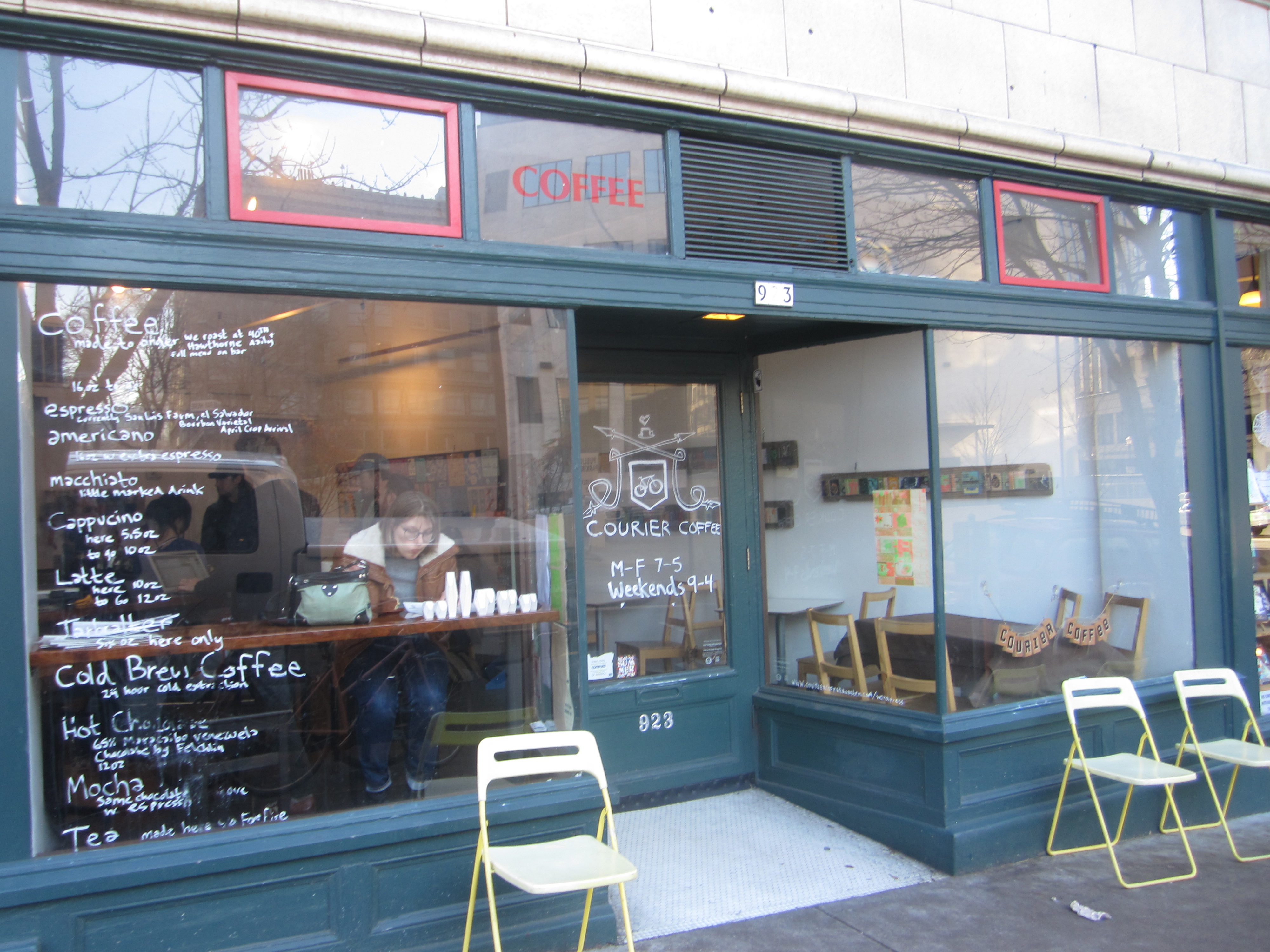 Courier Coffee on the other hand isn’t exactly an architectural marvel or a proper tea parlor. It’s downright Portlandia there on SW Oak. They even have sparkling Portland tap water on tap and they let you know the pour-over coffees’ water is precisely 198.6 + or – .4 degrees F. The roastery is out on SE Hawthorne and the beans often transported around the city via bicycle.
