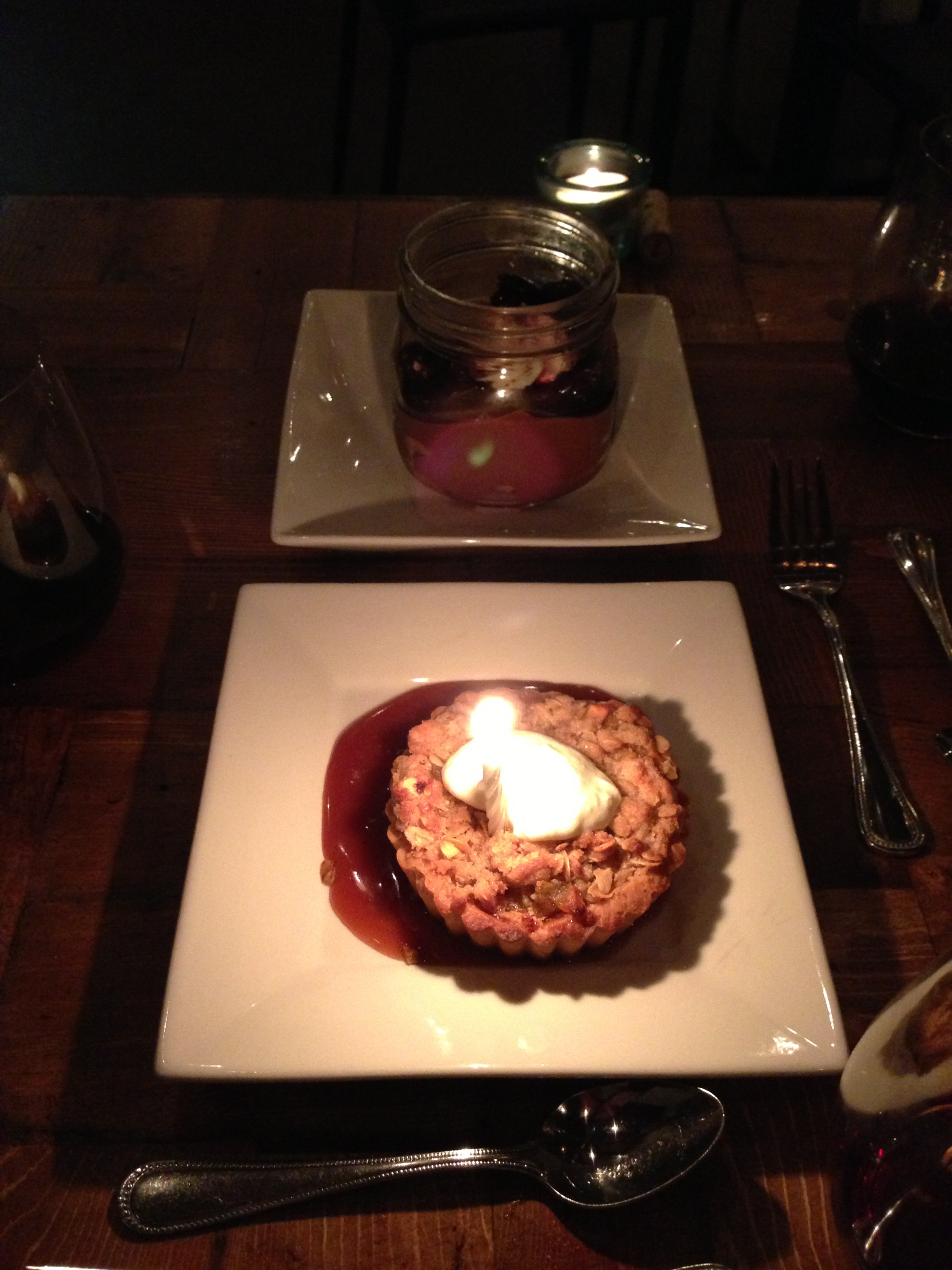 Dempsey often times seems to be the only pastry chef in Phoenix since nobody wants to compete with her. Her name seems to appear on at least half the menus I’ve encountered dining around the area for the past several years. A not-so simple take on an apple pie with an apple and frangipane tart gets the classic sweet-salty addition of a formidable fleur de sel caramel sauce. Dempsey’s creativity is revealed with the usual afterthought, chocolate tiramisu, given a handsome facelift from just sweet enough cherry compote. The tiramisu relaxes in a mason jar (not my favorite dessert technique), ready to be mixed by diners with cherry sauce and whole marinated cherries on the chocolate-coffee mousse’s surface.