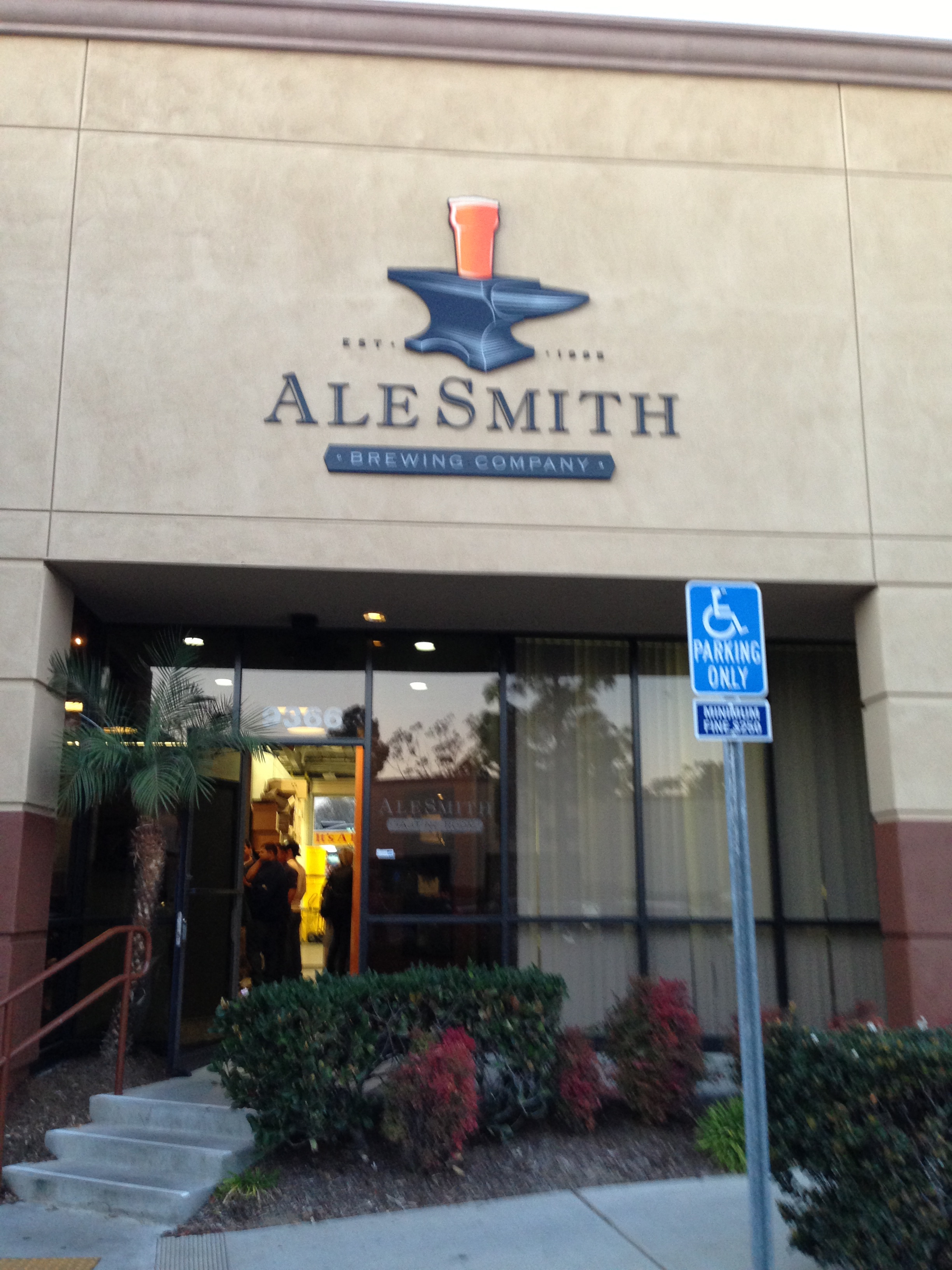 AleSmith started in 1995 by Peter Zien in a tiny storage garage in a nondescript commercial area just north of the Miramar Naval Base, near the middle of nowhere. It’s a beer abundant area as it turns out, with numerous tap rooms and microbreweries (Green Flash, Hess, Rough Draft) nearby. Since 1996, Tod Fitzsimmons has been the head brewer, leading the charge of one of the most important breweries of the past decade. A recent Friday night proved that the party was at AleSmith’s tap room, regardless of how out of the way it is.