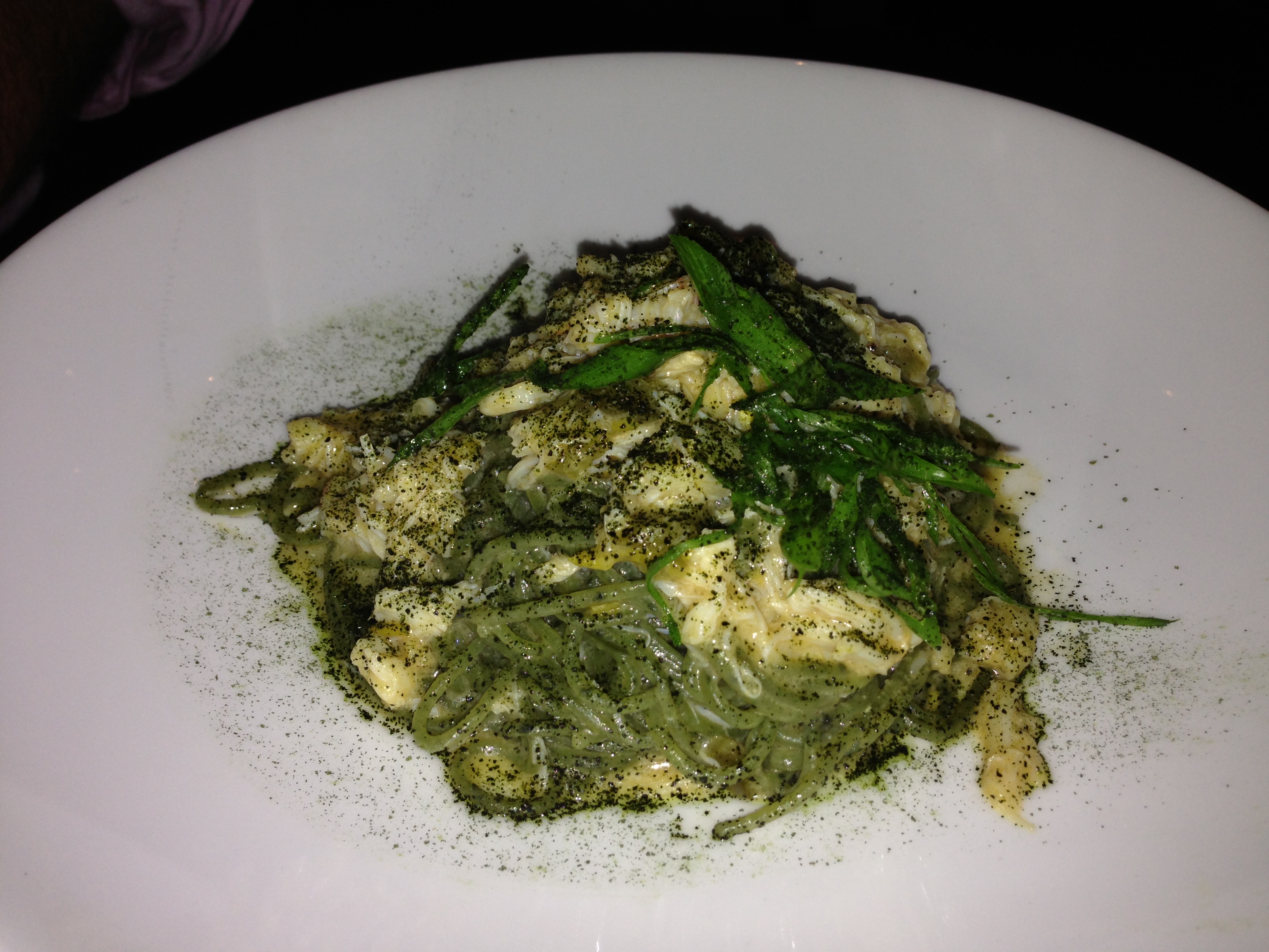 Superba Snack Bar: Wakame Spaghettini, Uni, Dungeness Crab, Miso Butter & Pickled Jalapeños