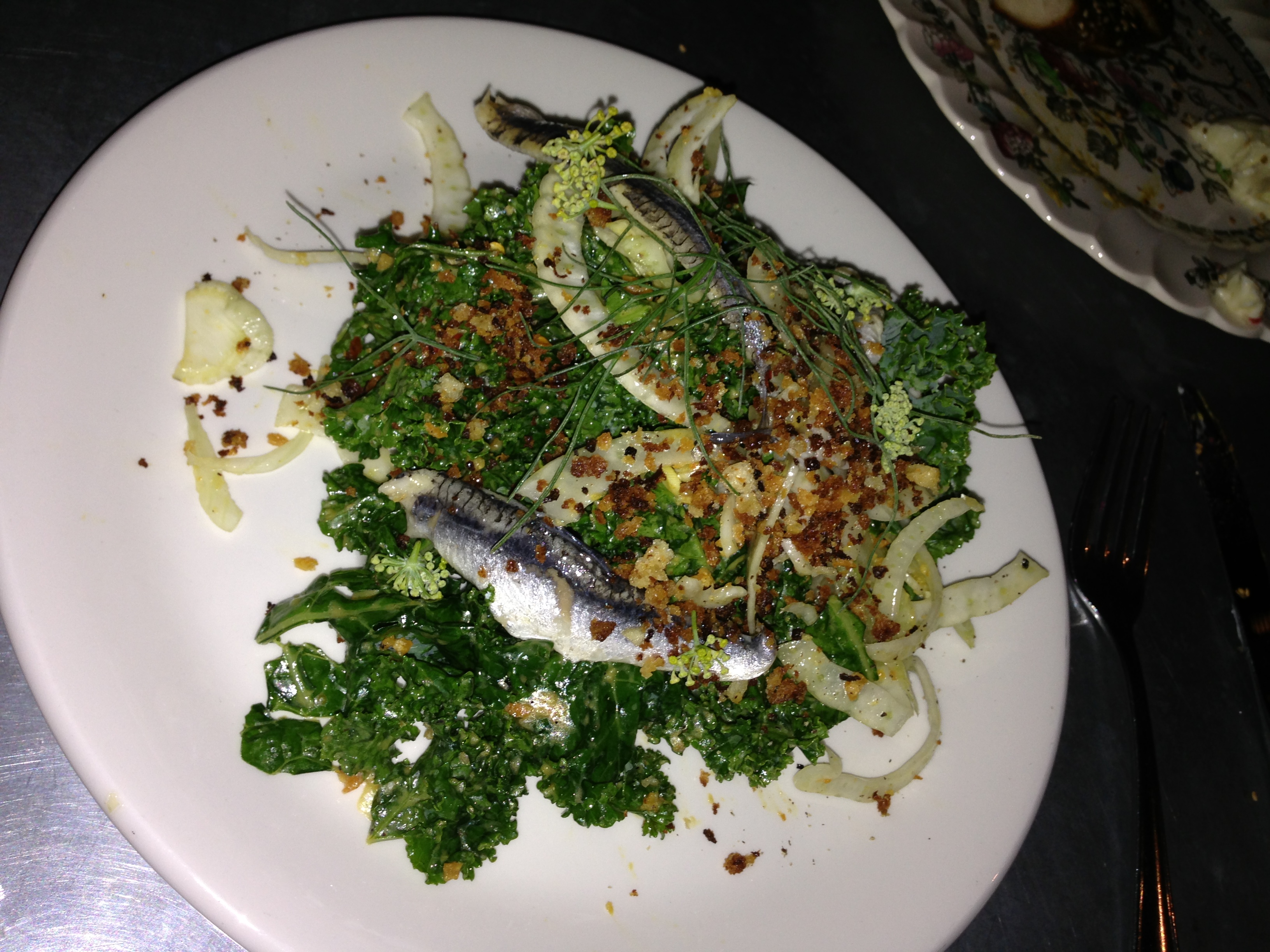 St. Vincent: Curly Kale, Boquerones, Bread Crumbs, Smoked Clementine