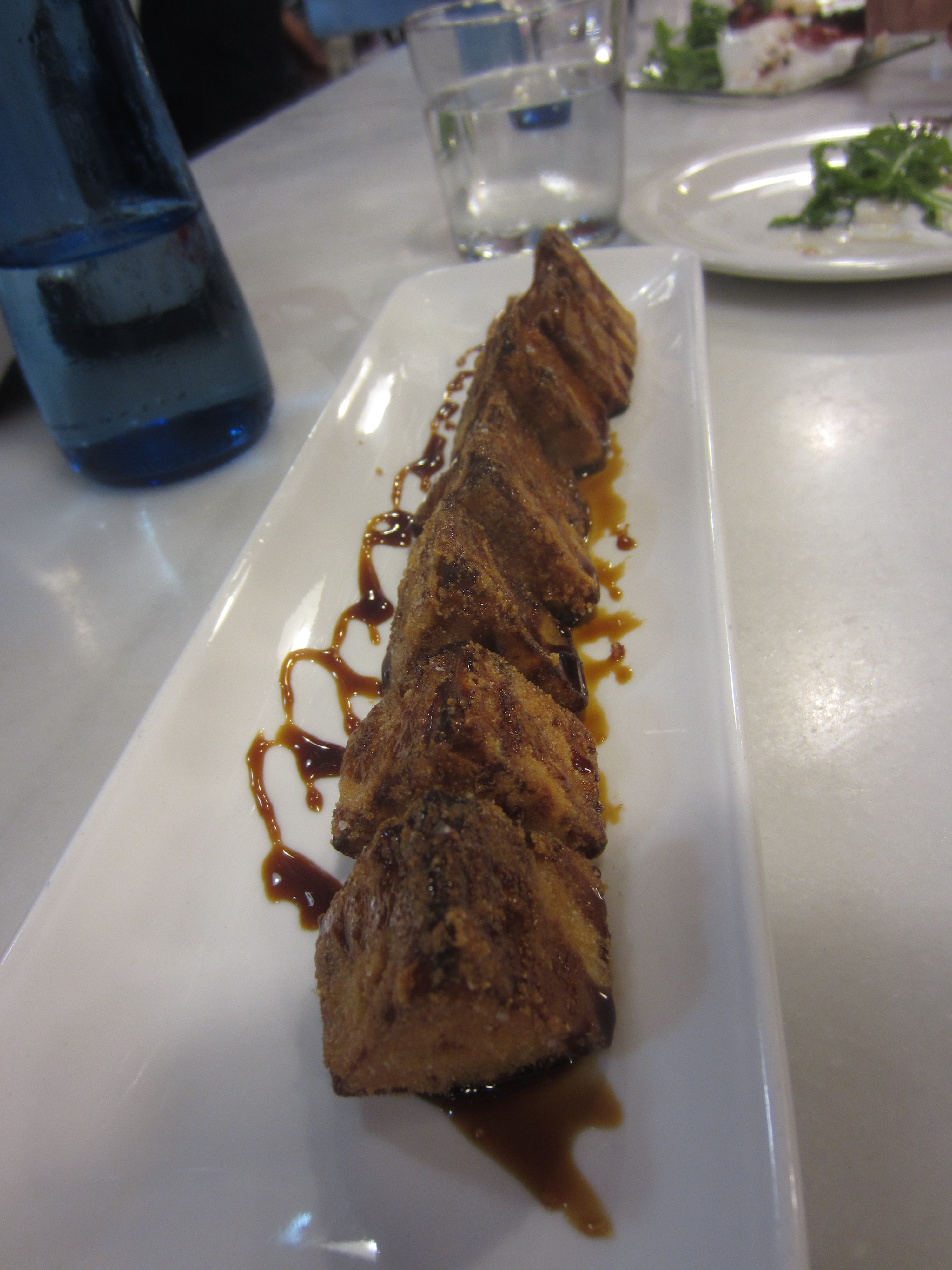 Of all the tapas in this world Trevor, you pick this? Mark Bittman and I are two eggplant spokesmen and you will be too after this dish. It’s from the same sweet-earthy profile as those great sweet potato fries you’ve once had, except meatier. We couldn’t get enough of these, or the completely non- Spanish burrata with mustard sprouts, rocket, and sundried tomatoes. Lolita’s mini hamburgers aren’t exactly going to win awards. However, their sliced rare ahi tuna in ponzu, a holdover from the heavily praised prior tenant Inopia, could be at Alan Wong’s in Honolulu. I could eat their imitation of the classic smoked salmon, greek yogurt, and truffled honey montadito from the legendary nearby tapas bar Quimet y Quimet at least once a day. But at the end of the meal, I couldn’t stop talking about crispy triangles of sticky fried eggplant.