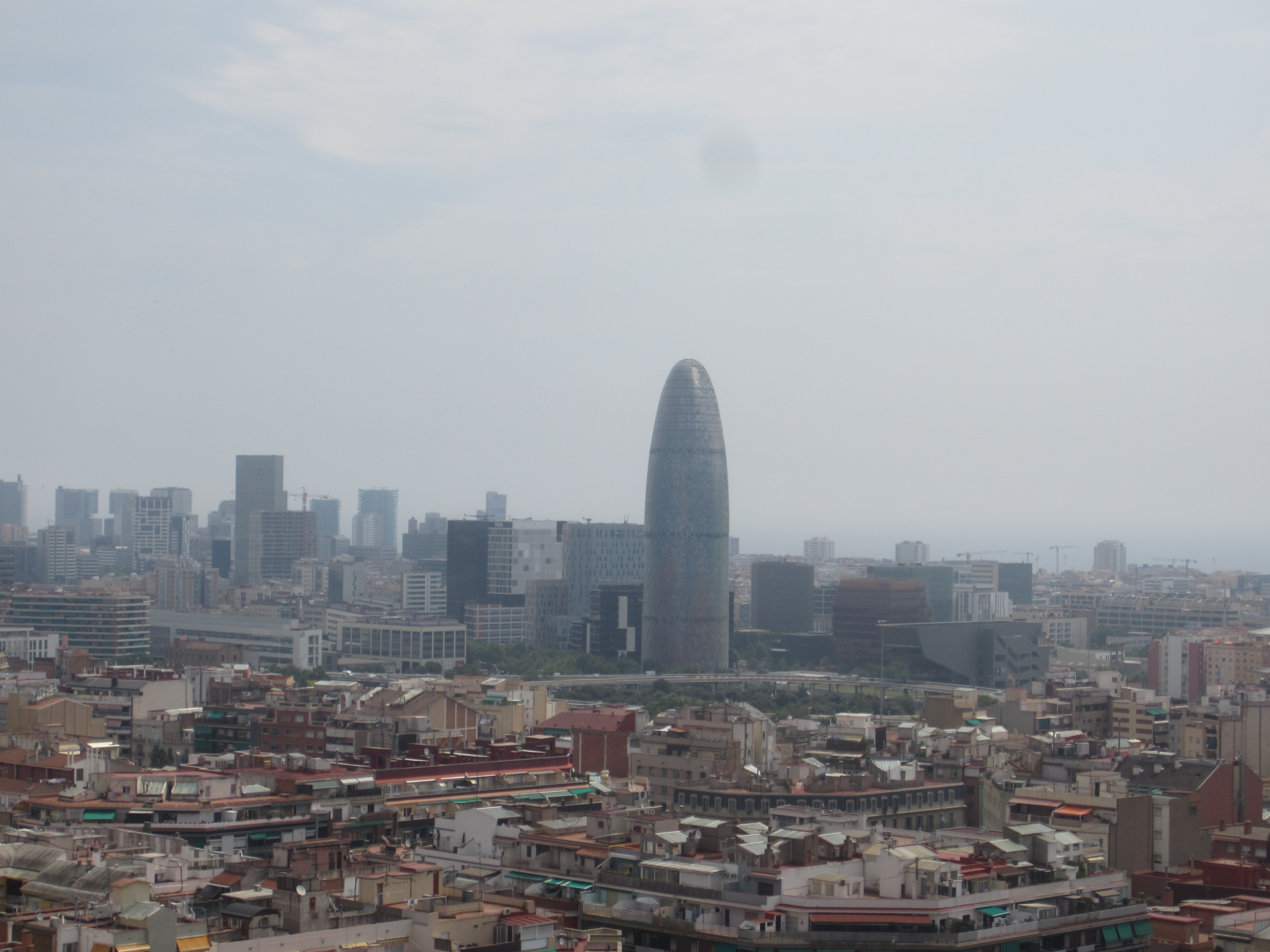 True. Sort of. There are the landmarks raising out of the air: Santiago Calatrava’s TV Tower, Sagrada Familia, Torre Agbar (also known as the bullet casing), the two towers rising high out of nowhere at Port Olimpic, the teleferico dangling on a cable between the port and Montjuic, the mountains to the west, the Mediterranean to the east, and Montjuic itself. And yes, smog covering it all that reminds us Los Angeles expats of our former home.