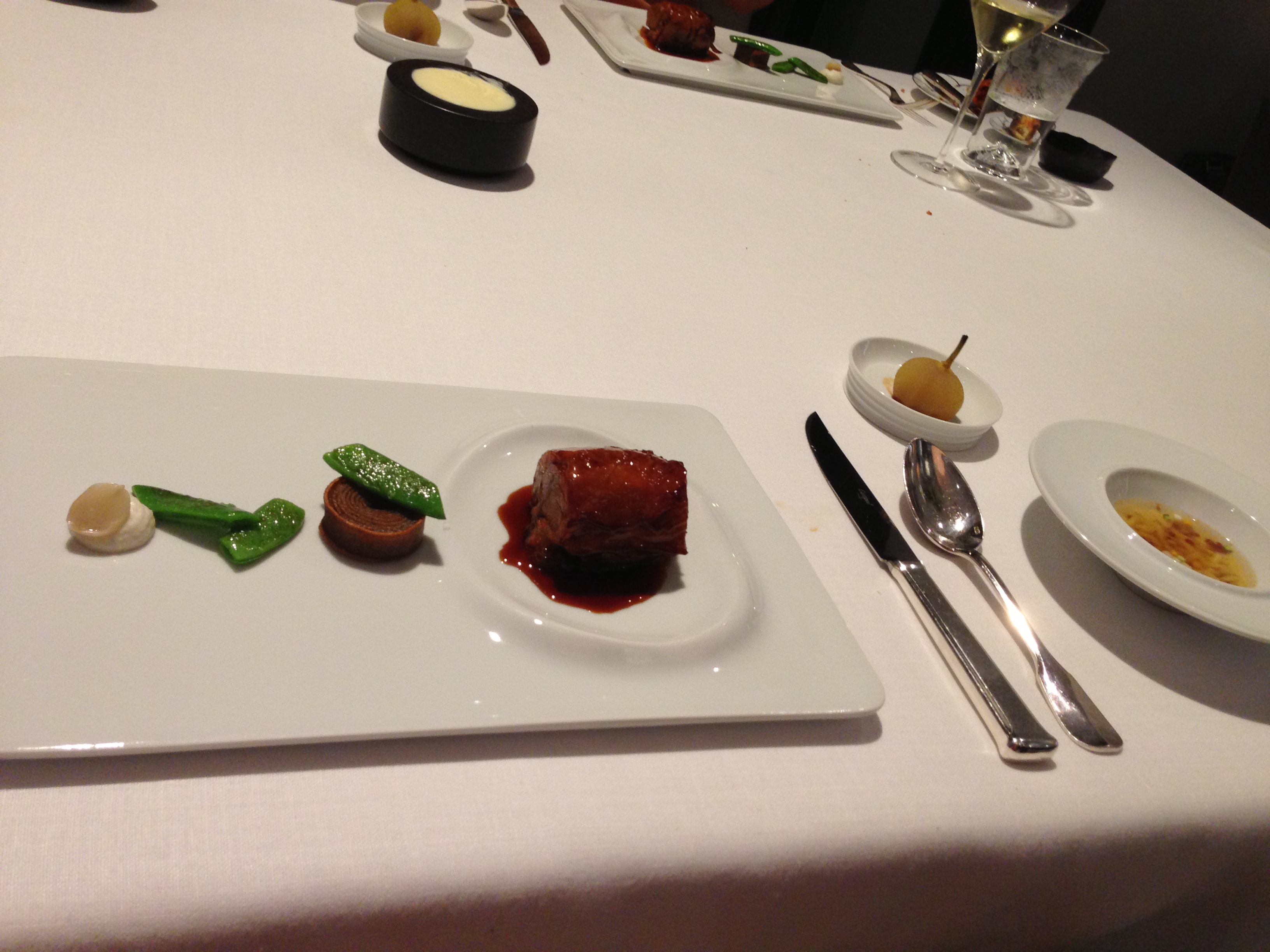 As excited as I was for Jean Georges’ celebrated sea scallops with a caper-raisin emulsion that remain one of my favorite recipes to make at home, this arctic char absolutely stole the show. Look how the piece of fish glistens. One experienced dining partner of mine at the table called it the best fish dish he’s ever had. It might be the same for me. Such tender, beautiful fish. Basil permeated everywhere to a near hypnotizing point. So much depth from the tomato emulsion, so much summer character. No wonder Jean Georges has written books on how he eschews butter for fruits and vegetable to boldly fortify his sauces. Under-achieving service and other dishes aside, this is why a chef like Jean Georges belongs in the pantheon of star chefs. This is the top tier of four star cooking.