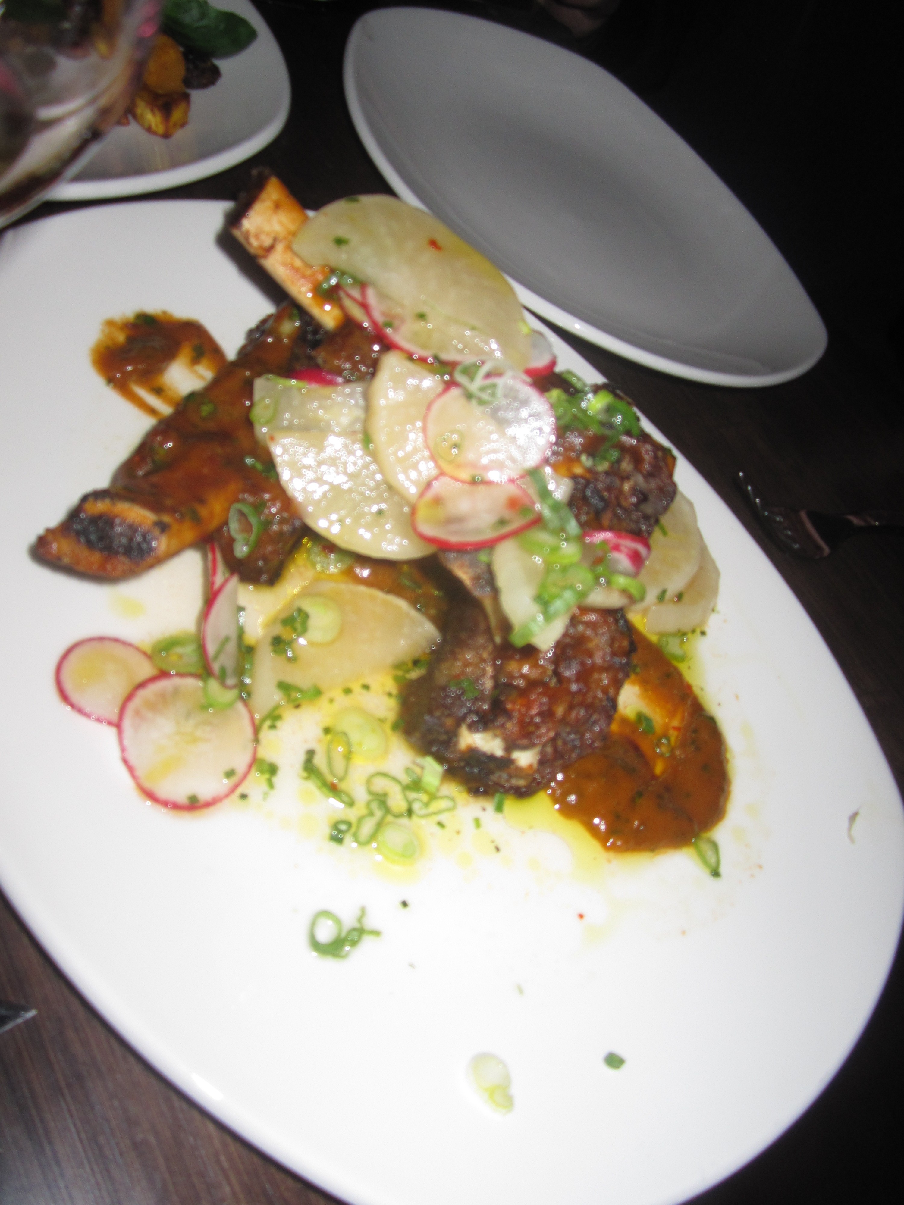 The “Things Done Changed” is a force, a glowing sunshine hue with a perfect frothy egg white shaken consistency. The key is the exchange between the smoked lemon and jalapenos with the Pisco, leading to a sensation akin to umami. I noticed some bacon on the palate, but also papaya salsa and bountiful fresh in season citrus without an ounce of bitterness. Unfortunately, the rest of the cocktails didn’t have the same fully locked-in balance or depth at Whey. I was underwhelmed by the “Shipwreck” with Bourbon, Rum, lime, and mint with a dash of Angostura Bitters, and the “Devil in a New Dress” with Tequila, Red Pepper, Combier Orange, Lime, and Mezcal, where the sugary orange notes commanded the proceedings, and more spice and smoke would have elevated everything much higher.